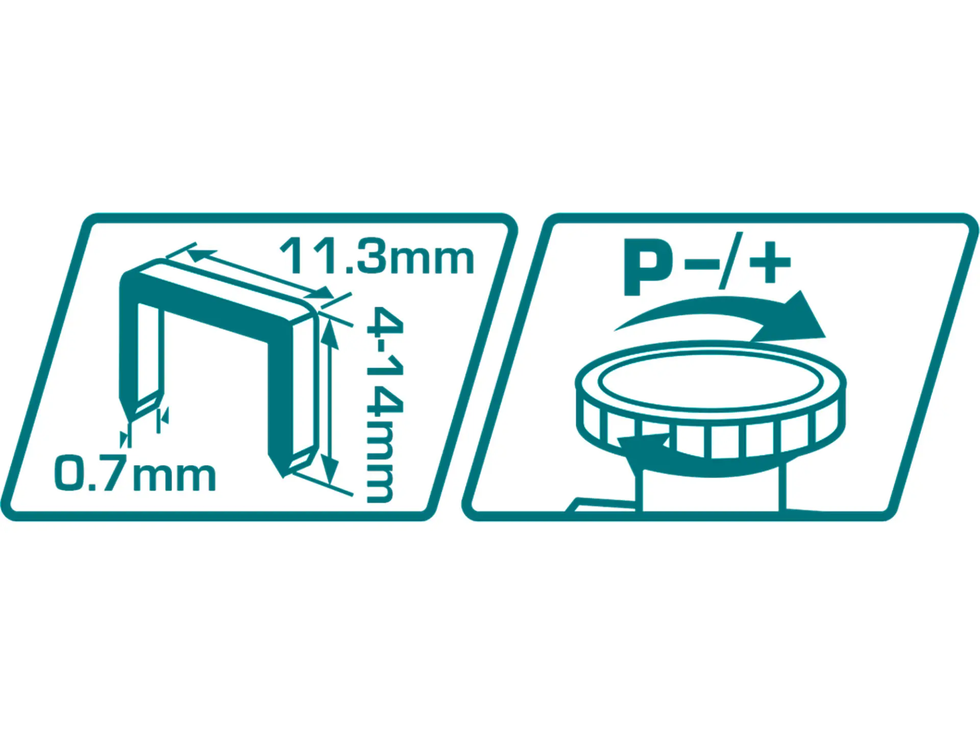 Průmyslová sešívačka s nastavitelnou silou, sponky (11,3 mm) délky 4-14 mm.