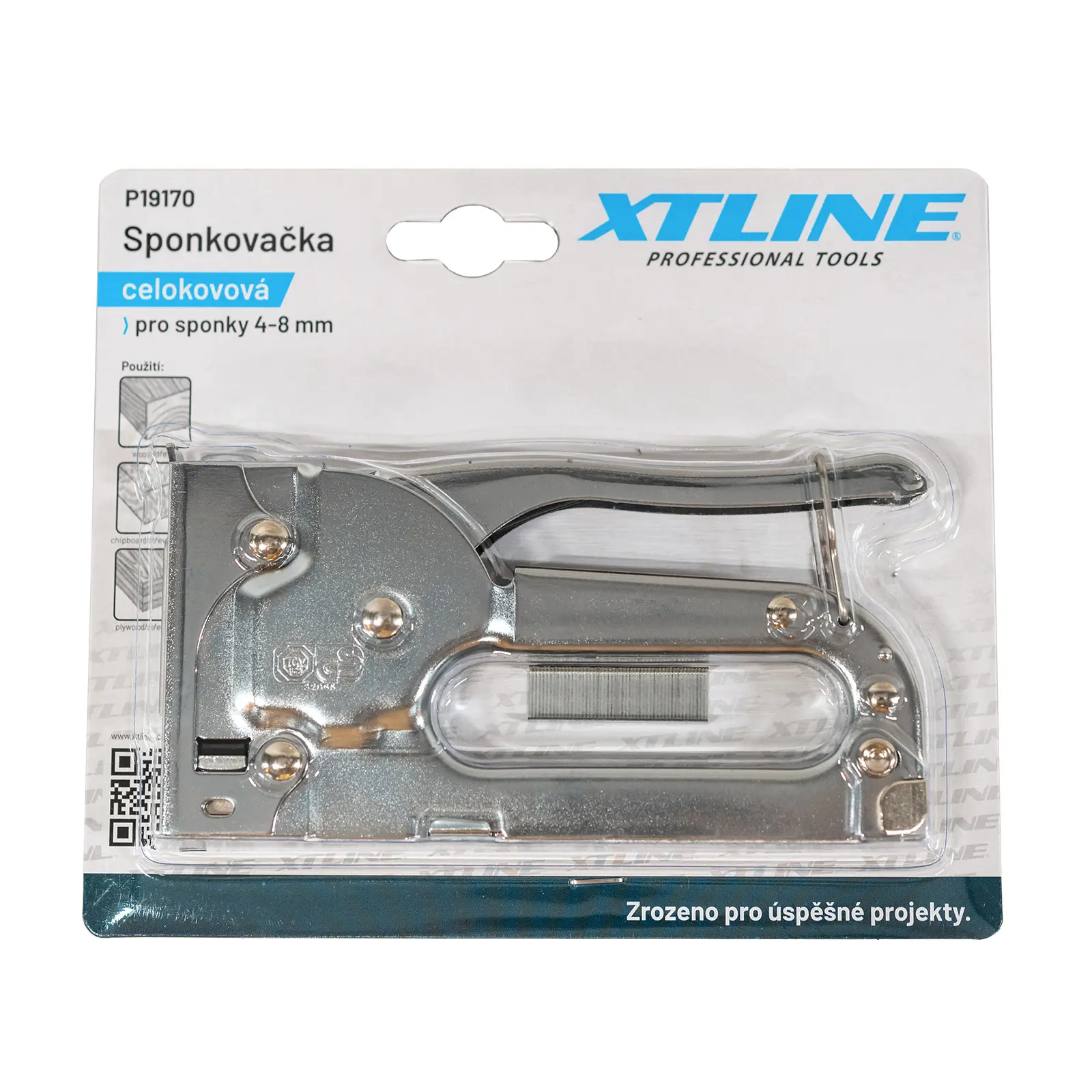Celokovová menší sponkovačka pro tloušťku sponky 0,7mm a šířku sponky 11mm. Do sponkovačky lze použít výšku sponky 4,6 a 8 mm.