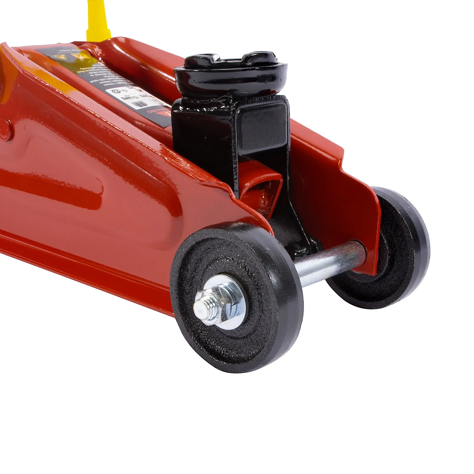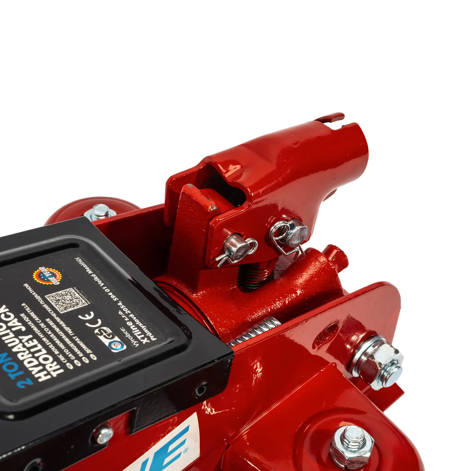 Hydraulický pojízdný zvedák v plastovém kufru. Otočná řiditelná kolečka. Rukojeť pro přenášení.