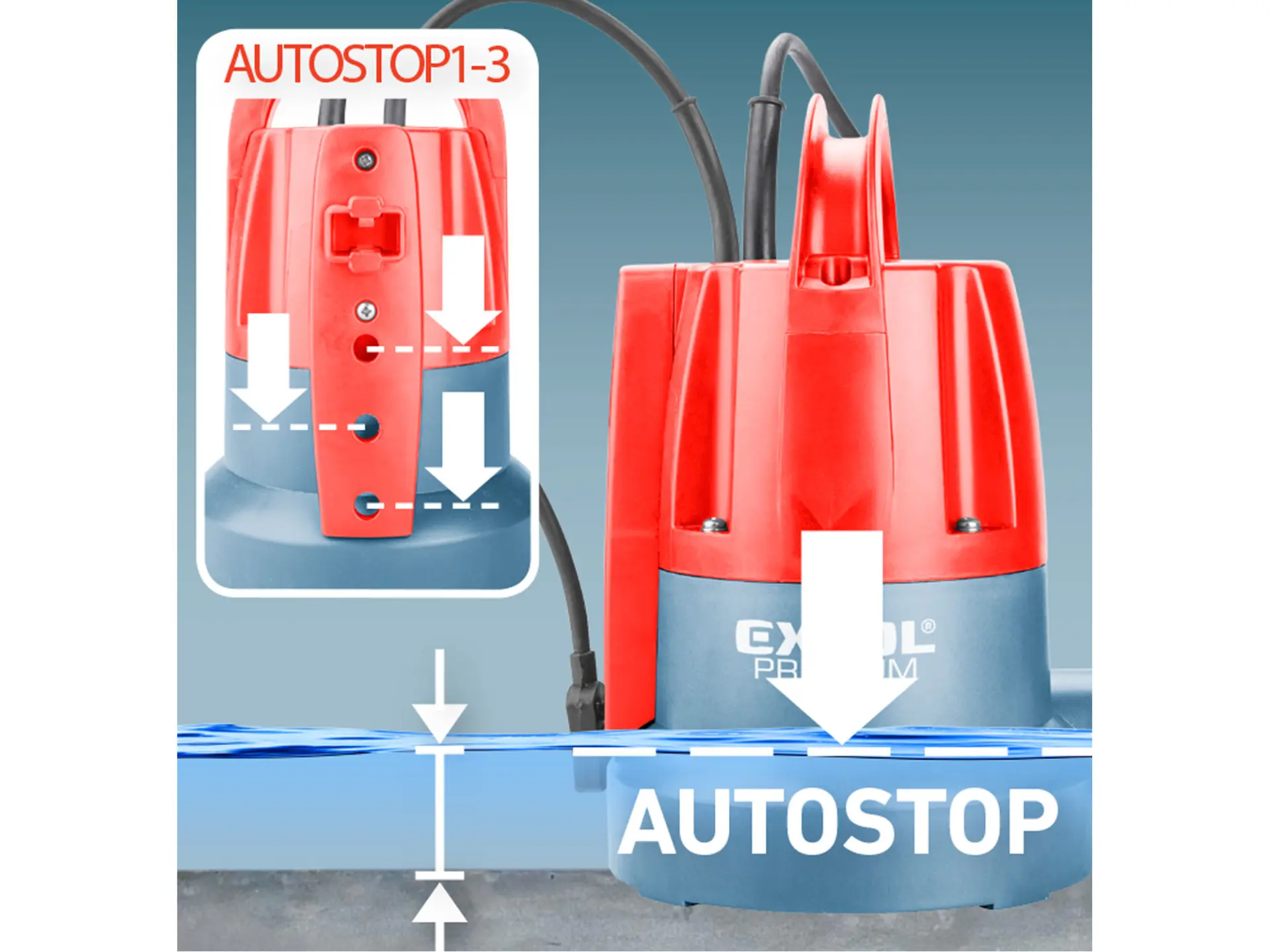 Vynikající model vhodný pro dočerpávání do “sucha” v zahradních bazénech, menších prostorech nebo nádobách. Díky motoru o výkonu 400W je max. průtok čerpadla 8000 l/hod a max. výtlak 7m. Čerpadlem projdou pevné nečistoty o maximální velikosti 1mm. Čerpadlo může pracovat ve třech režimech – čerpání do nastavené výšky, čerpání dokud je voda v čerpadle, manuální režim (nutná přítomnost obsluhy). Namísto běžného plovákového spínače je čerpadlo vybaveno čidlem a toto čidlo lze umístit do požadované výšky nebo volně položit na dno čerpaného prostoru. Jakmile se čidlo dostane nad hladinu vody, bude čerpadlo ještě 3min čerpat a poté se vypne. Pro úplné vyčerpání vody můžete potom čerpadlo přepnout na manuální režim a počkat u něj než vyčerpá zbytek vody. Na hadicovou přípojku lze nasadit hadici o průměrech 1” a 1 1/4”. Pro zvýšení výkonu při čerpání malých objemů je čerpadlo vybaveno zpětnou klapkou. Čerpadlo je určeno k čerpání čisté užitkové vody bez obsahu jakéhokoli mechanického znečištění.
