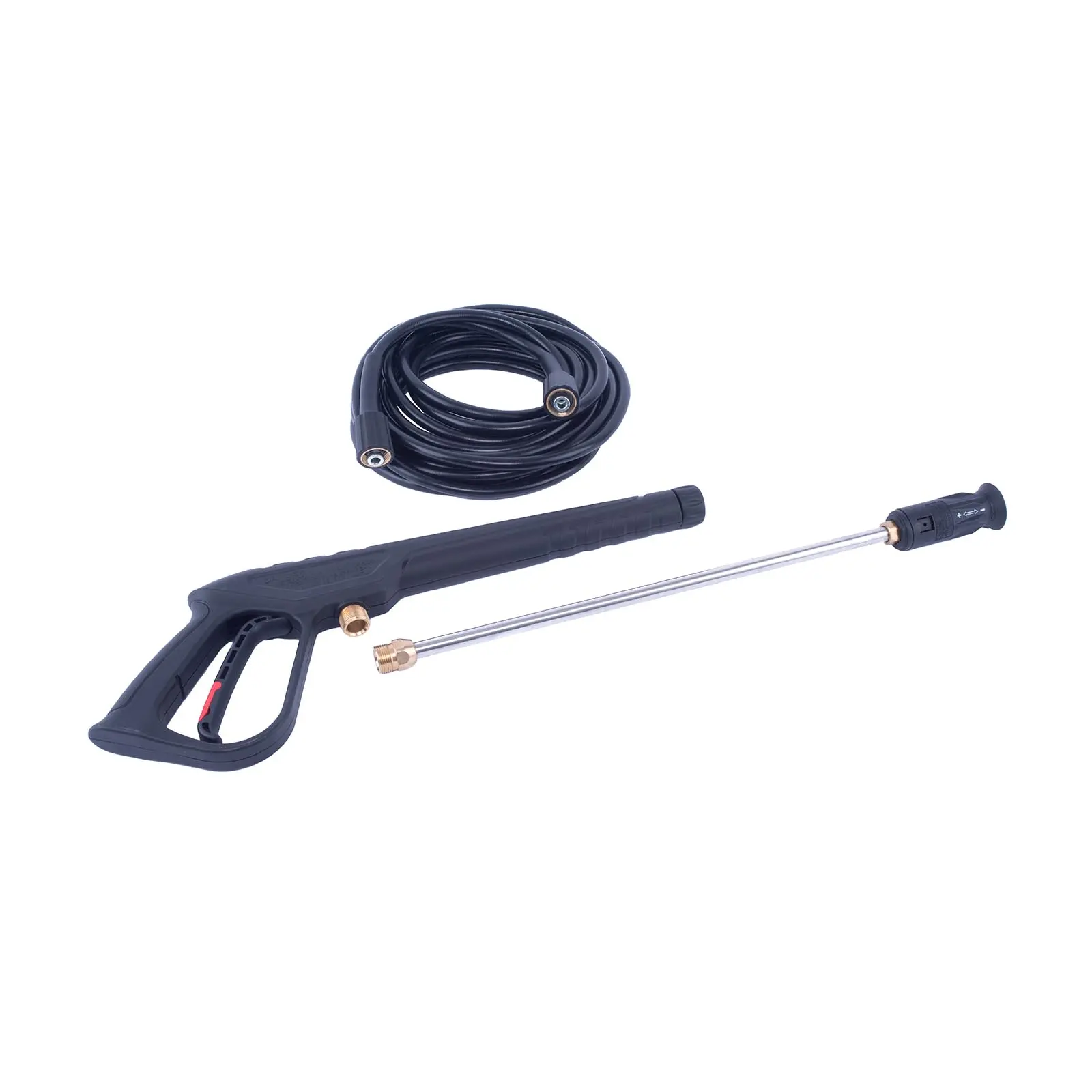 5 m přívodní kabel, 8 m vysokotlaká hadice, stříkací pistole s nastavitelnou tryskou