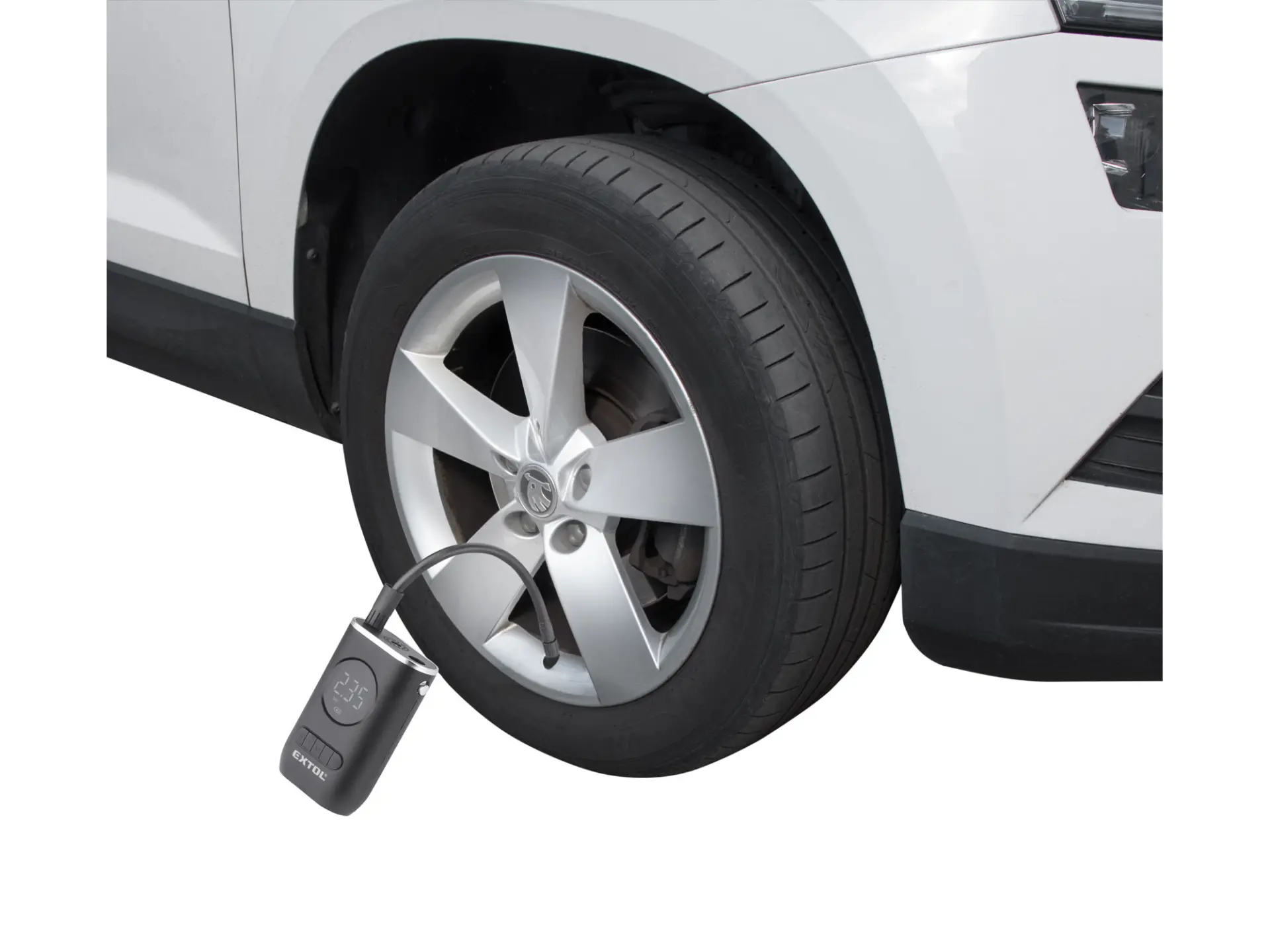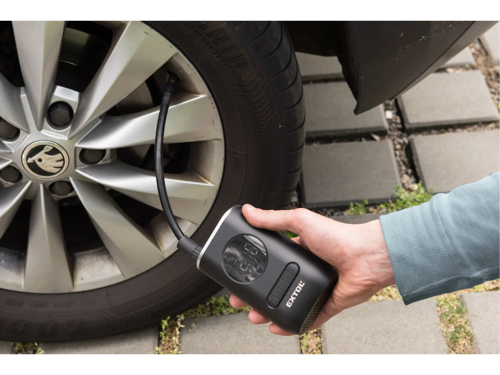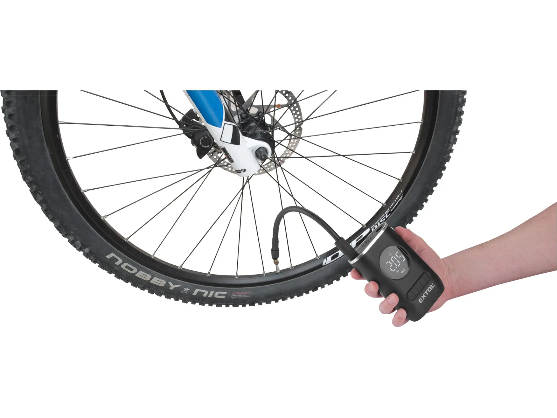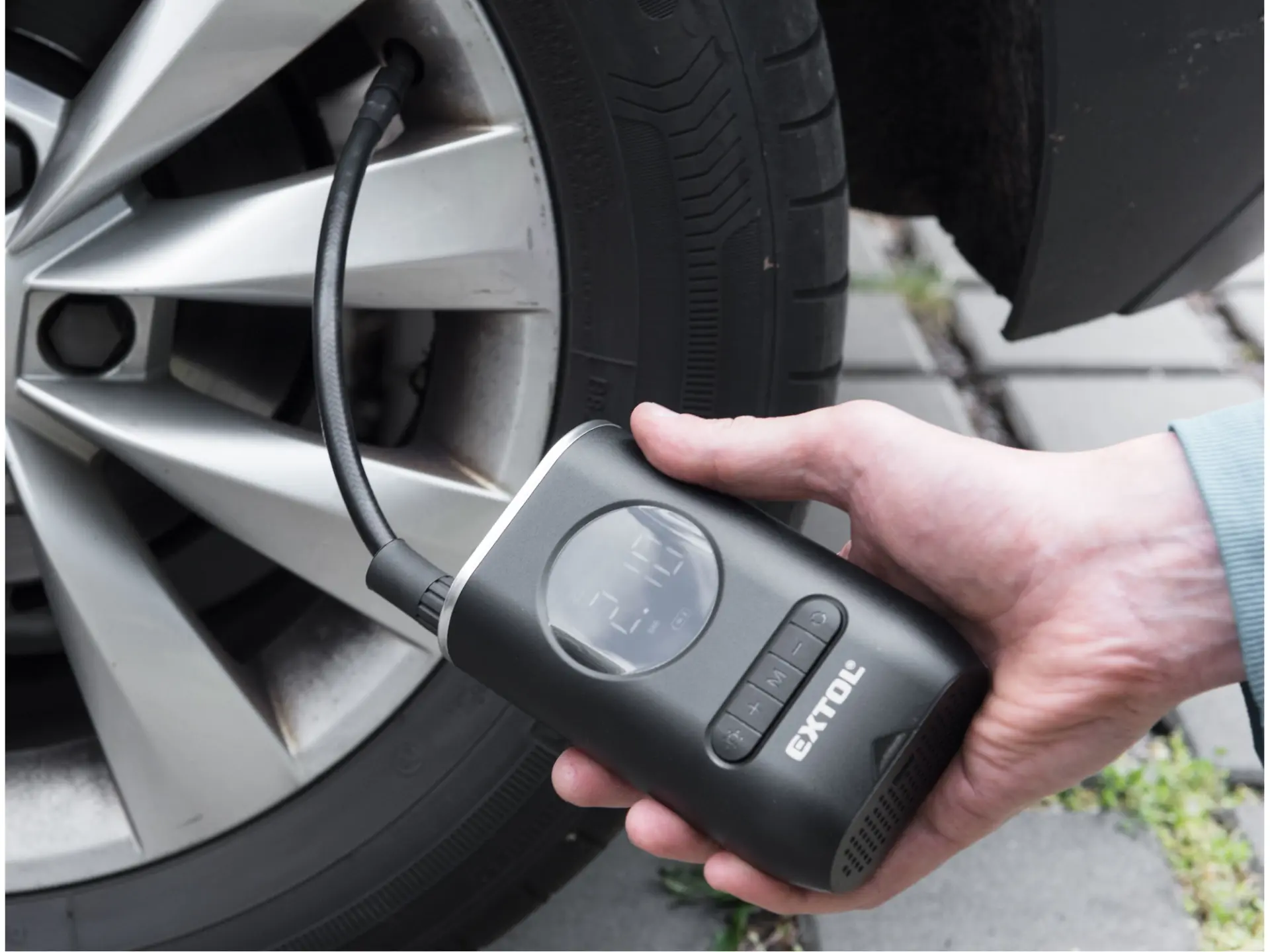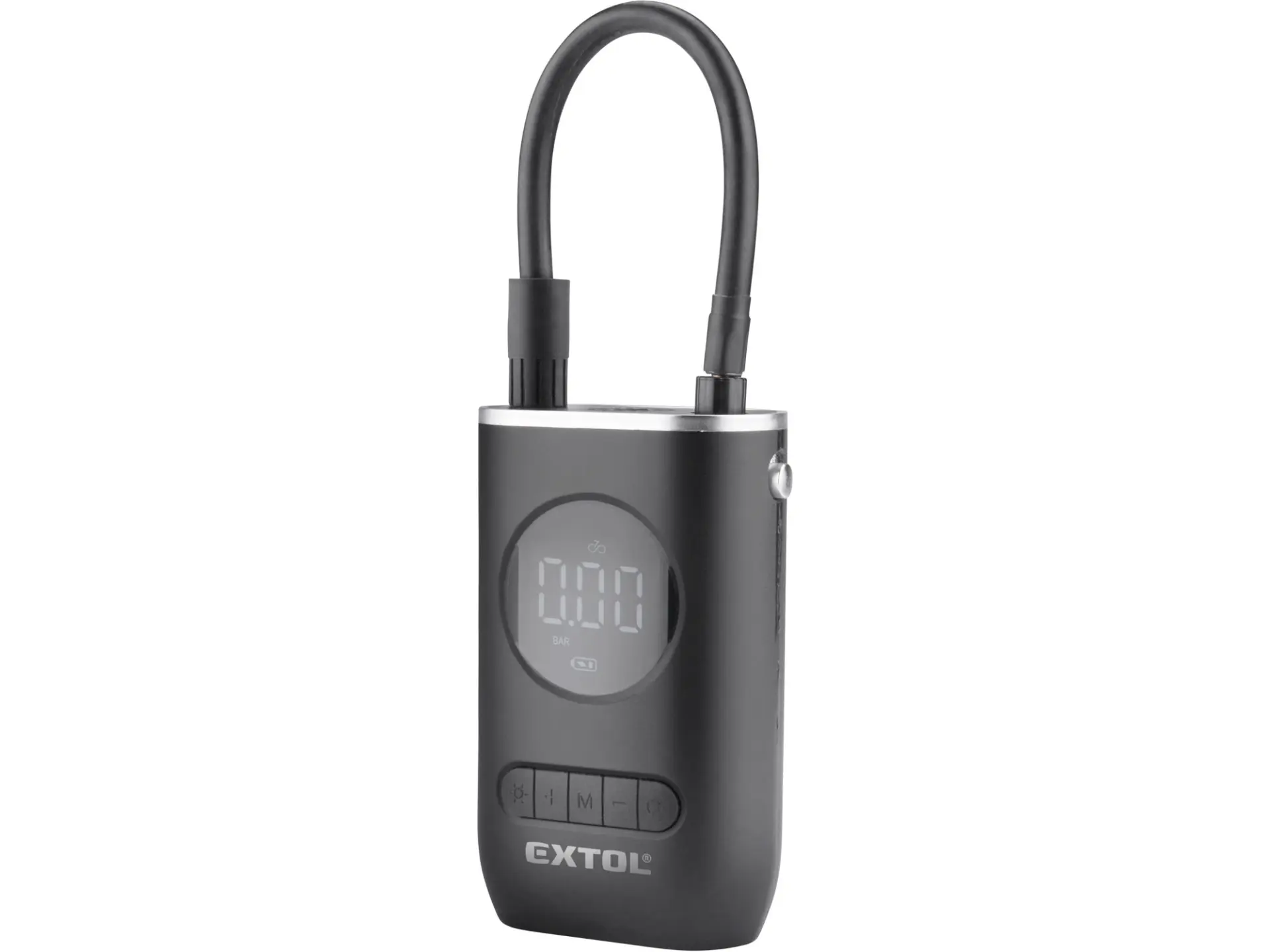 Nabíjecí cestovní kompresor s podsvíceným displejem je určen ke kontrole a nafukování pneumatik bicyklů, motorek a osobních automobilů na předepsaný tlak nebo k nafouknutí sportovních míčů, lehátek, matrací apod. Obsluha je velmi jednoduchá – na kompresoru nastavíte požadovaný tlak nebo zvolíte některou z přednastavených hodnot, spustíte přístroj a vyčkáte do automatického vypnutí. Kompresor má rozměr 13,5×8,5×5cm a hmotnost 380g a lze jej tedy snadno přibalit s sebou na cesty. Podsvícený displej a LED svítidlo, které lze zapnout samostatně a nezávisle na kompresoru, usnadňují používání kompresoru ve tmě. Pokud ho nepoužíváte, kompresor se sám po jedné minutě vypne. S USB-C konektorem jej lze nabít v klasické nabíječce (230V) nebo autonabíječce (12V). Díky Li-ion technologii je možné akumulátory kdykoliv dobíjet, aniž by se tím snižovala jejich kapacita. Li-ion akumulátor ztrácí energii vlivem samovybíjení velmi pomalu a vydrží dlouho nabitý a připravený k použití.
