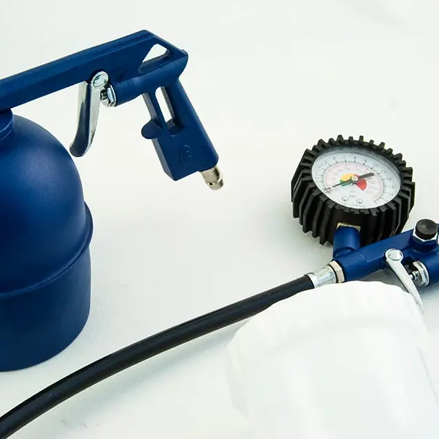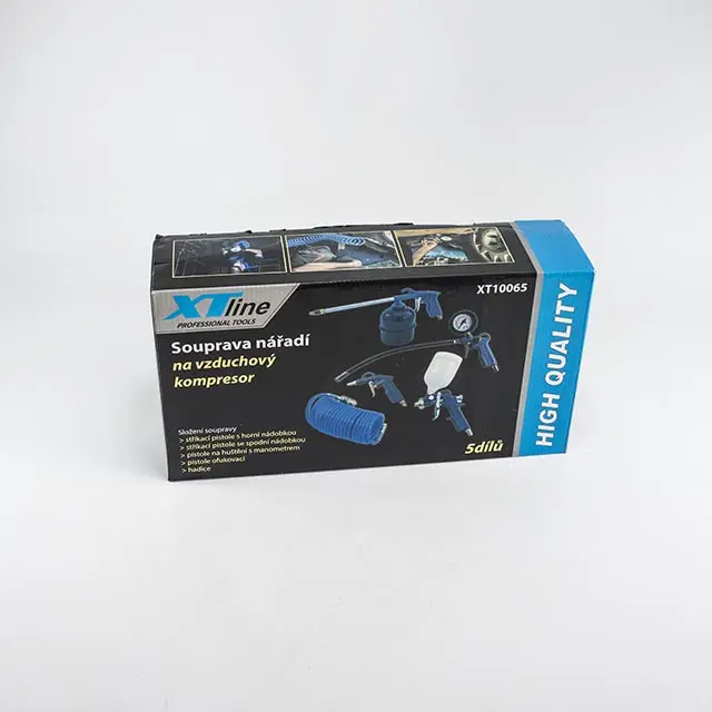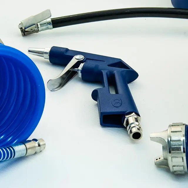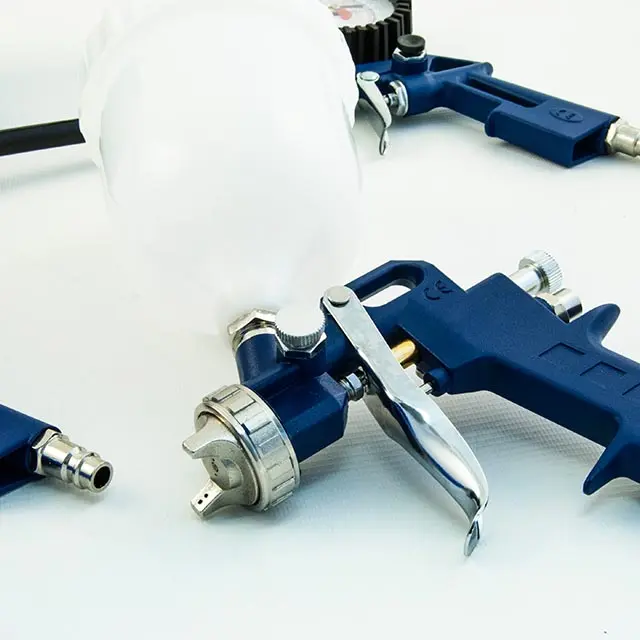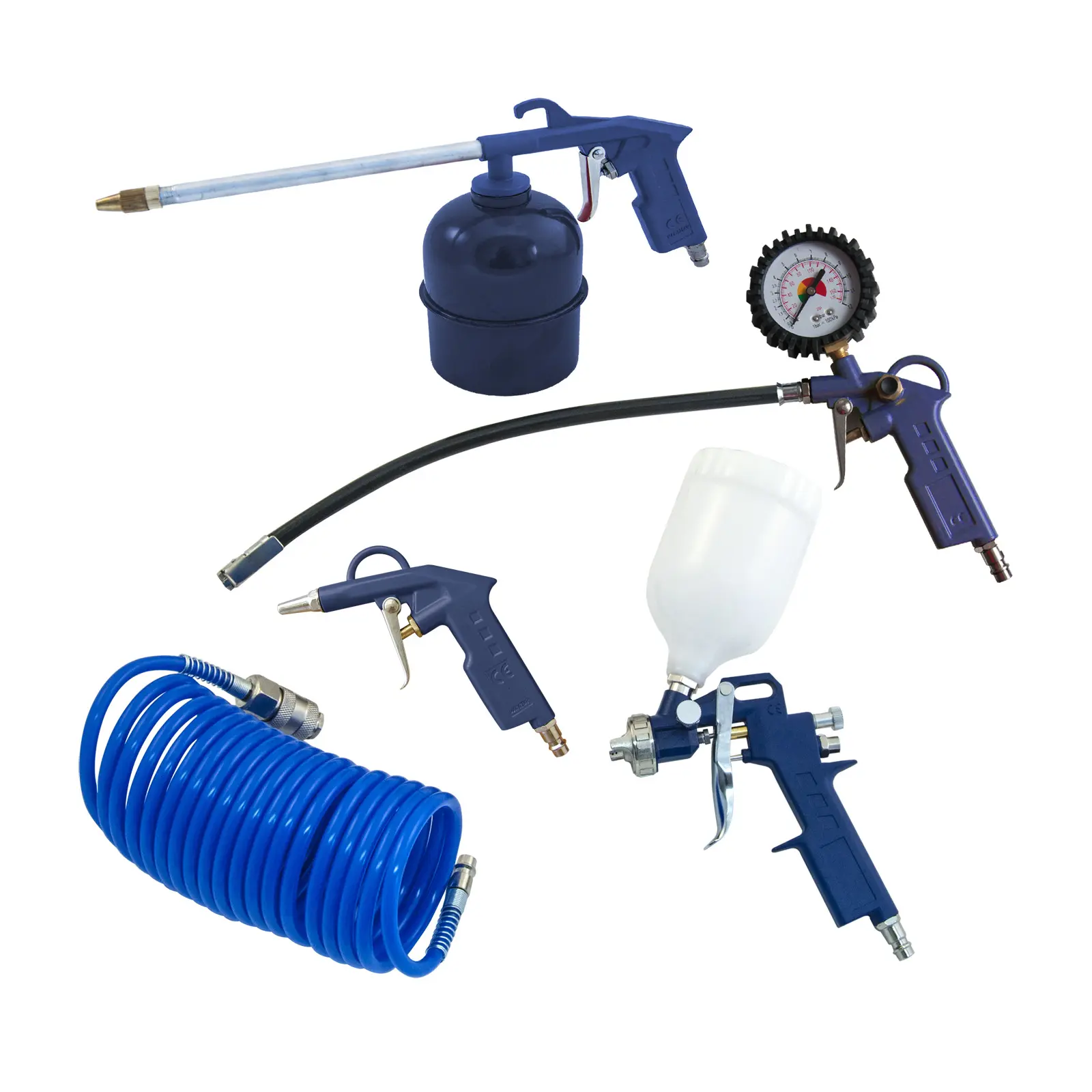 pistole s horní nádobkou, pistole se spodní nádobkou, pistole na huštění s manometrem, pistole ofukovací, hadice 5 m