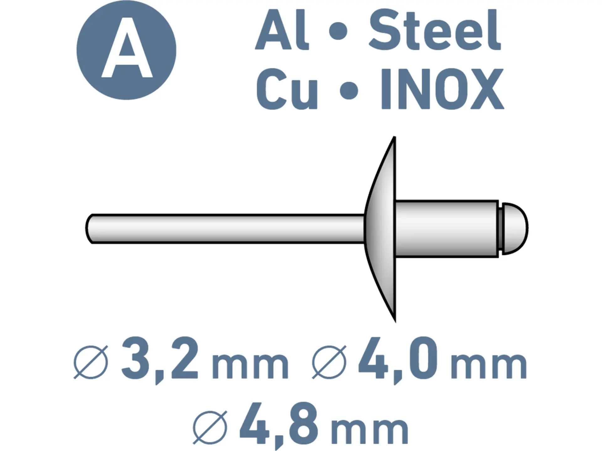 • pro nýty z hliníku, mědi, oceli i nerezu