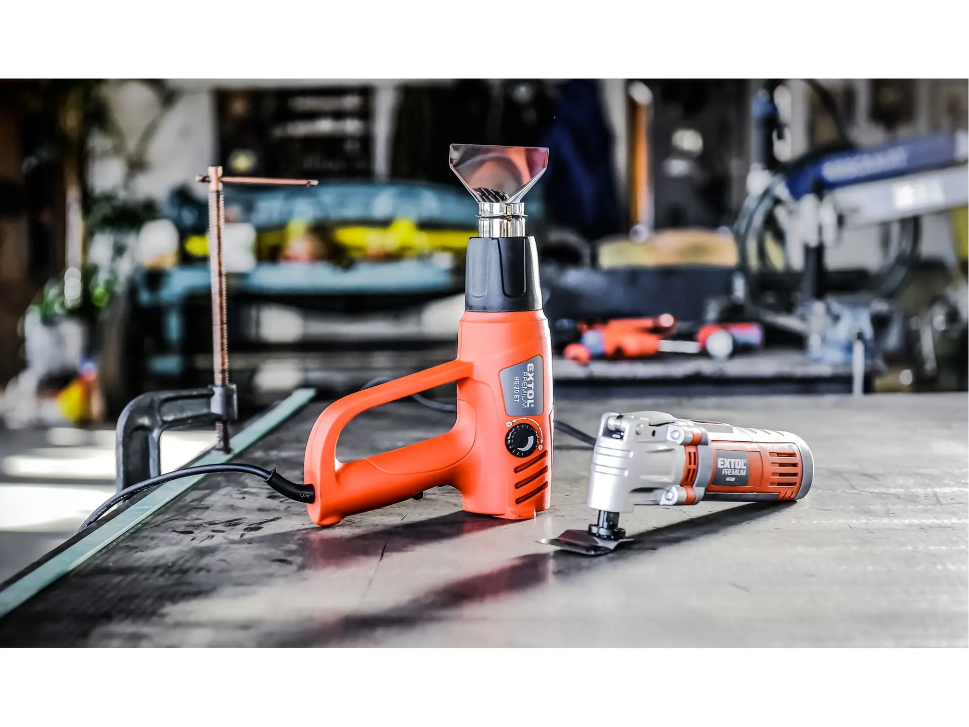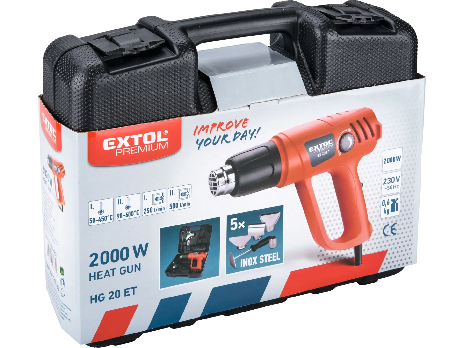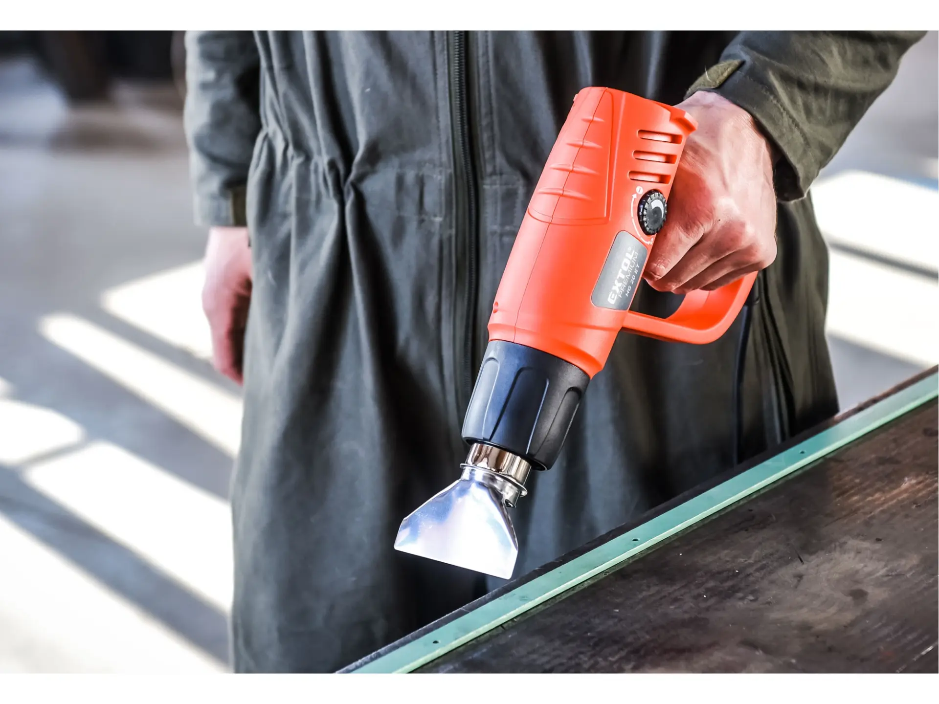 Horkovzdušná pistole je určena k nahřívání povrchů za účelem odstranění nátěrů (barev, laků), sušení čerstvě nanesených nátěrů, tvarování a spojování umělých hmot (např. trubek) a asfaltových krytin, uvolňování lepených spojů, pájení a také k rozmrazování zmrzlé vody v potrubí. Pistole umožňuje nastavit dva stupně lišící se teplotním rozsahem a průtokem vzduchu. Díky regulátoru teploty lze měnit teplotu v rámci nastaveného stupně.