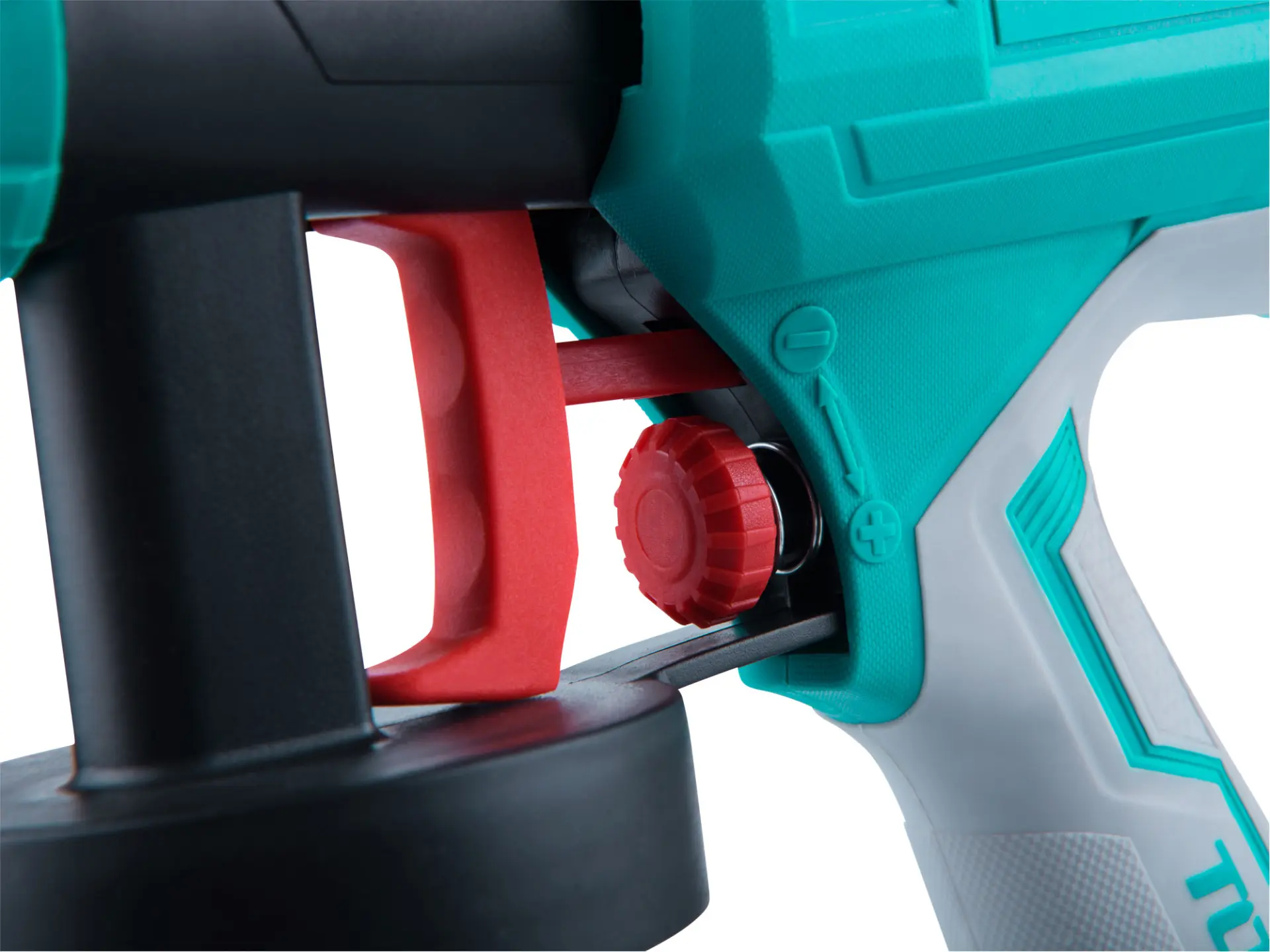Jestli vám u stříkací pistole překáží vzduchová hadice nebo elektrický kabel, máte možnost sáhnout po bateriovém řešení. Lehká plastová stříkací pistole, která výborně padne do ruky. Předností je snadná ovladatelnost a váha s baterií pouze 1,7kg. Snadné čištění. Tryska 2,5mm Vám zaručí použití i pro barvy s větší hustotou s maximální viskozitou 40din/s a sprejovací tlak 0,1 - 0,2bar. Možnost nastavení horizontální i vertikální polohy nástřiku barvy. Pogumovaná rukojeť skvěle padne do ruky a je velmi komfortní na úchop. Objem nádoby 800ml a maximální průtok 600ml/min.