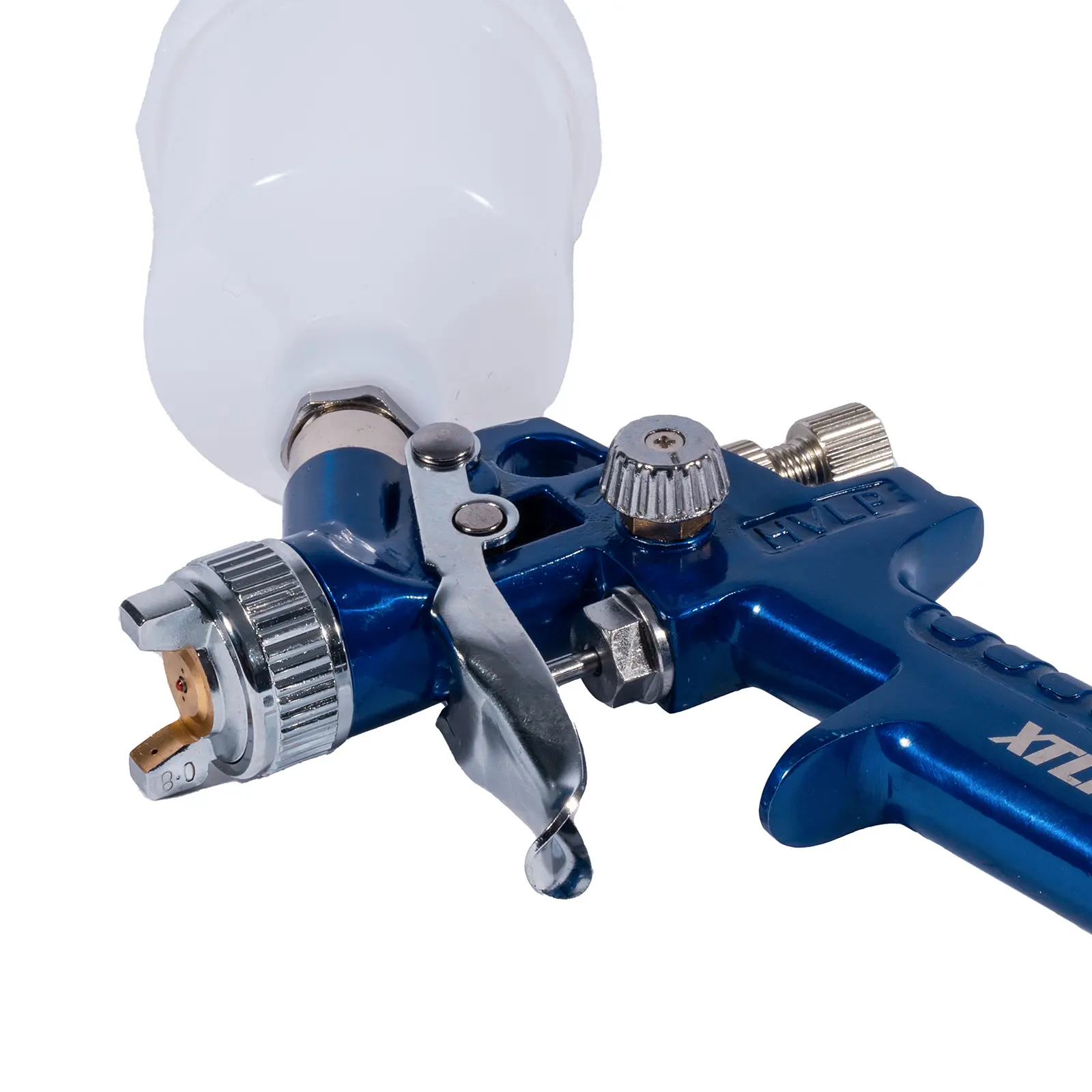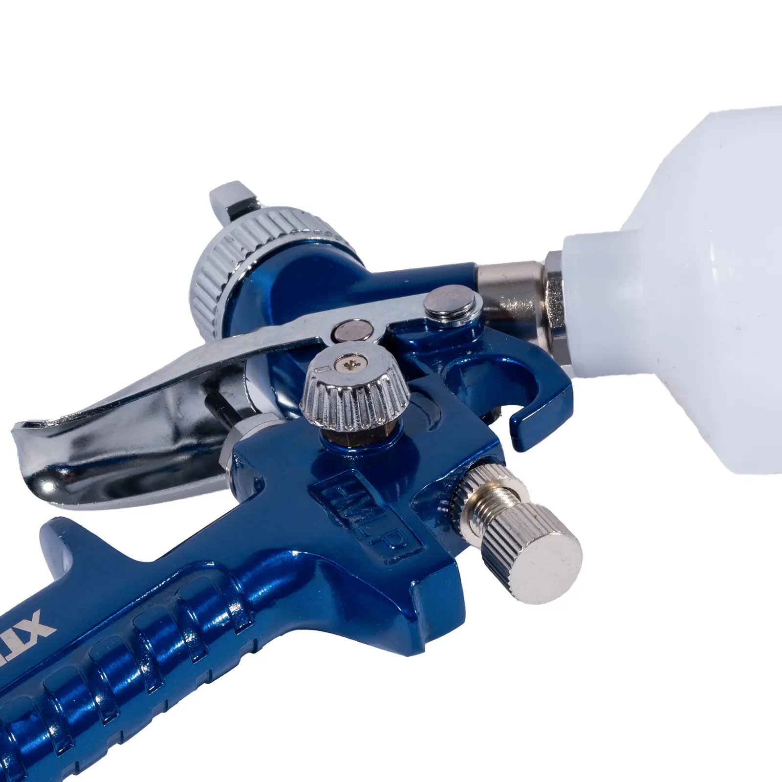Princip "HVLP" (High Volume - Low Pressure) zajišťuje nižší tlak při vysokém objemu a efektivně tak snižuje spotřebu materiálu až o 30%.