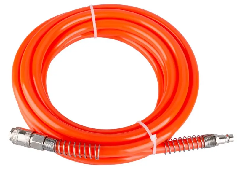 Spirálové tlakové hadice s rychlospojkami, prac. tlak 8 atm, světlost 10 mm. Délka hadice 5 m.