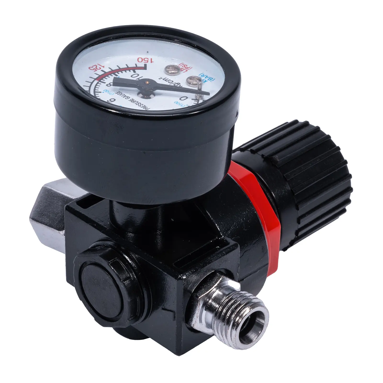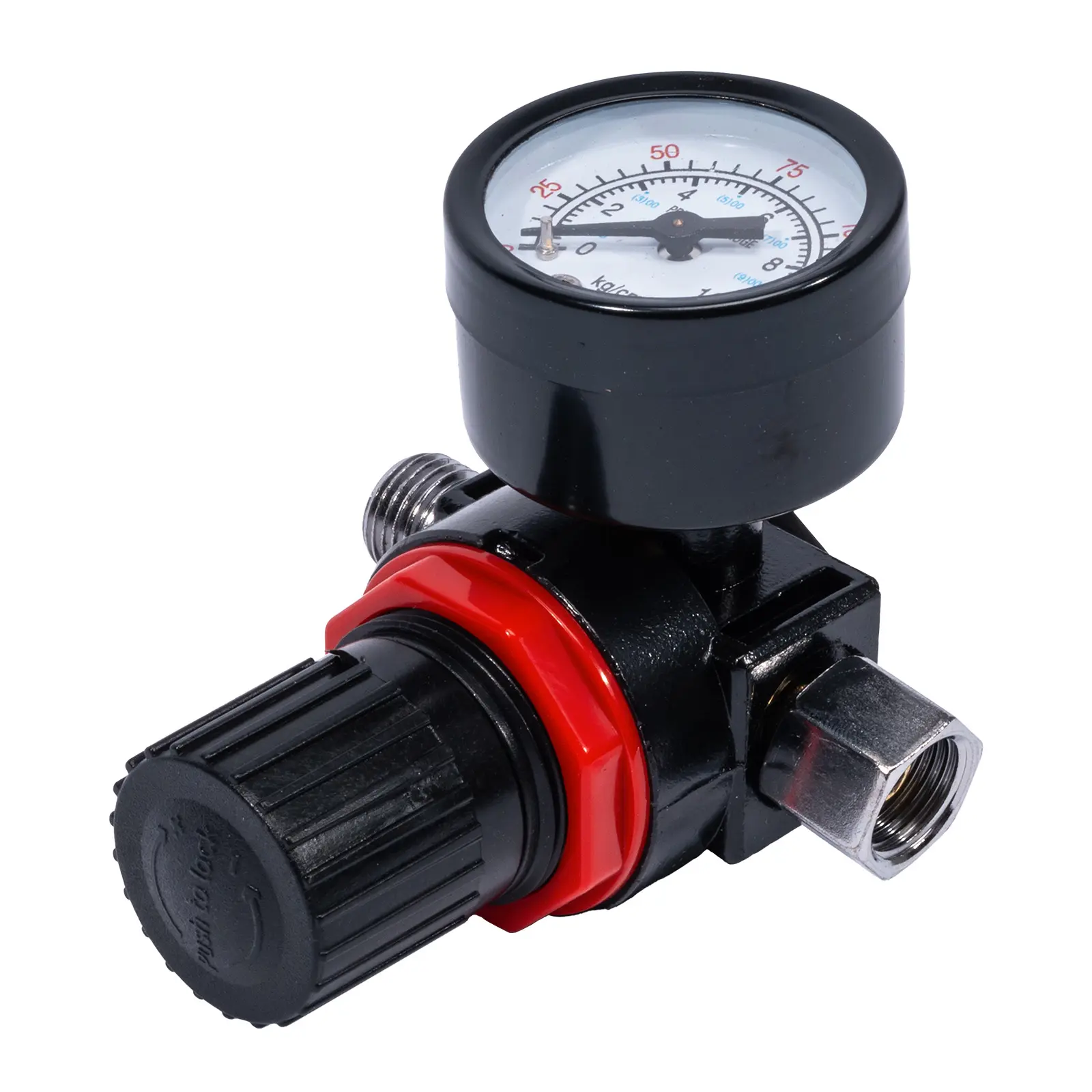 Regulátor pro přesné nastavení tlaku stlačeného vzduchu. Umožňuje plynulou regulaci a snadnou kontrolu aktuálního tlaku díky vestavěnému manometru. Ideální pro použití s pneumatickým nářadím, lakovacími pistolemi a dalšími zařízeními.