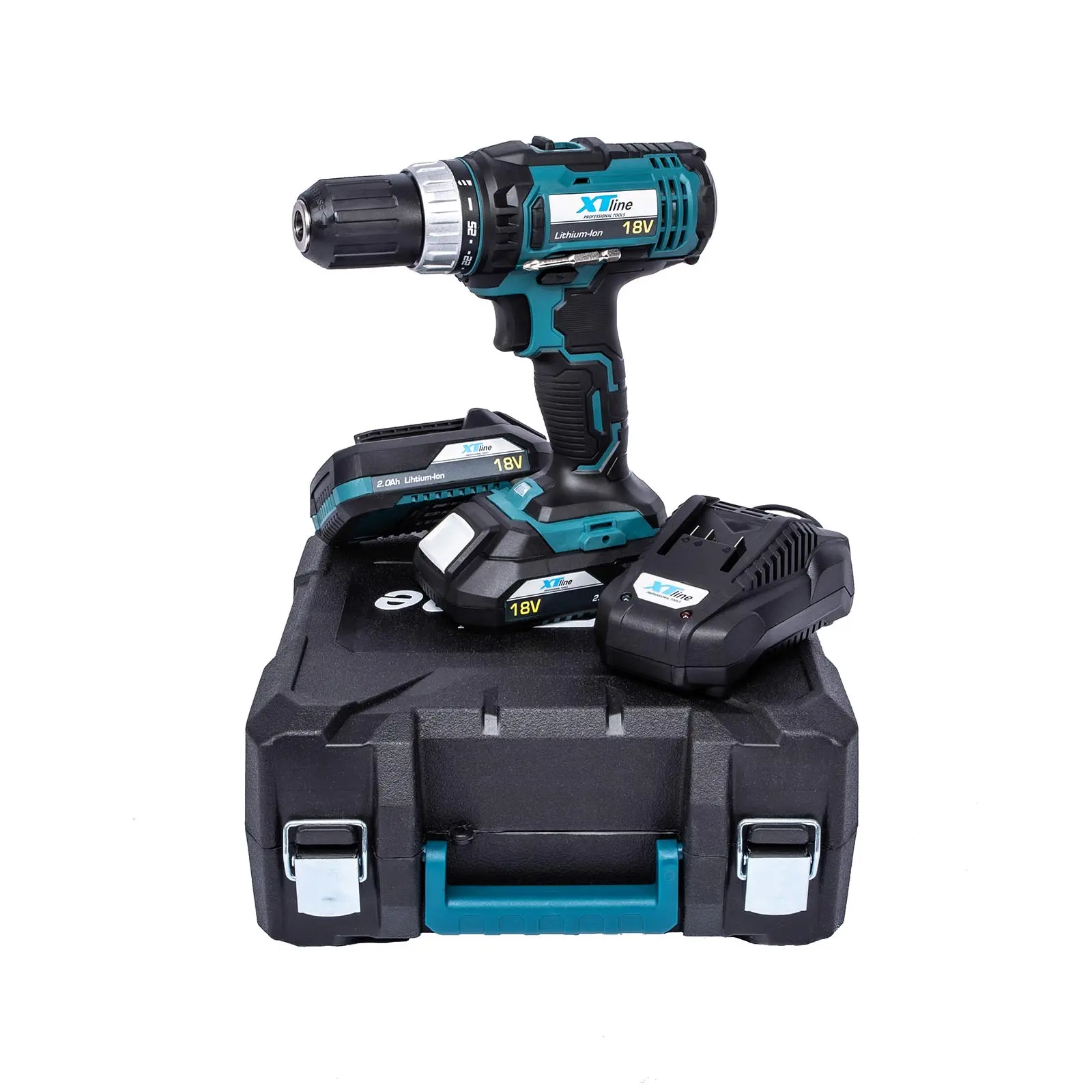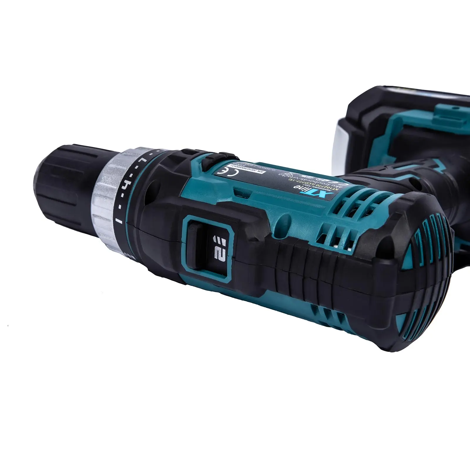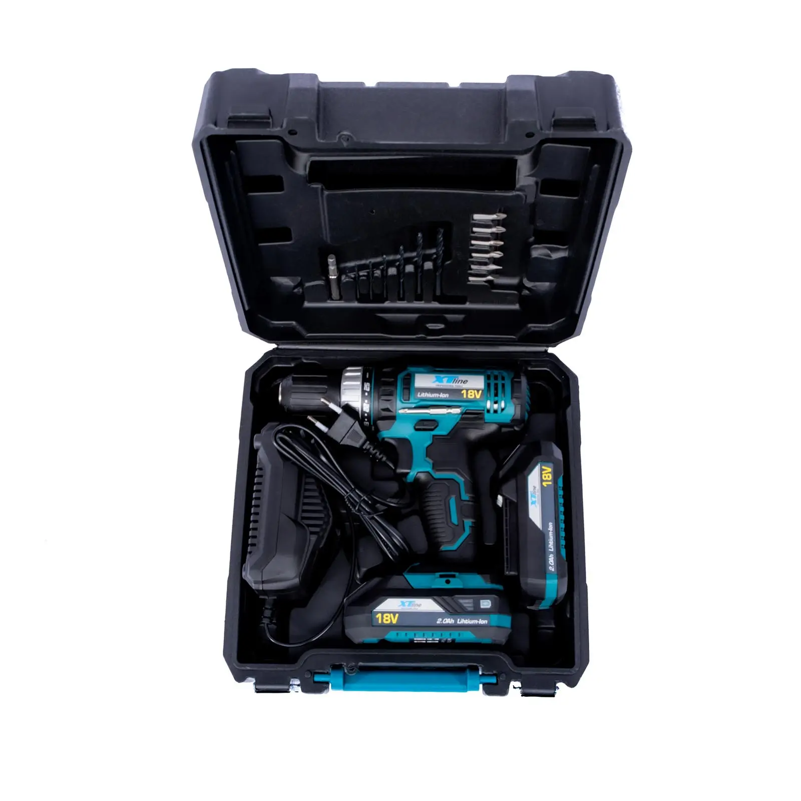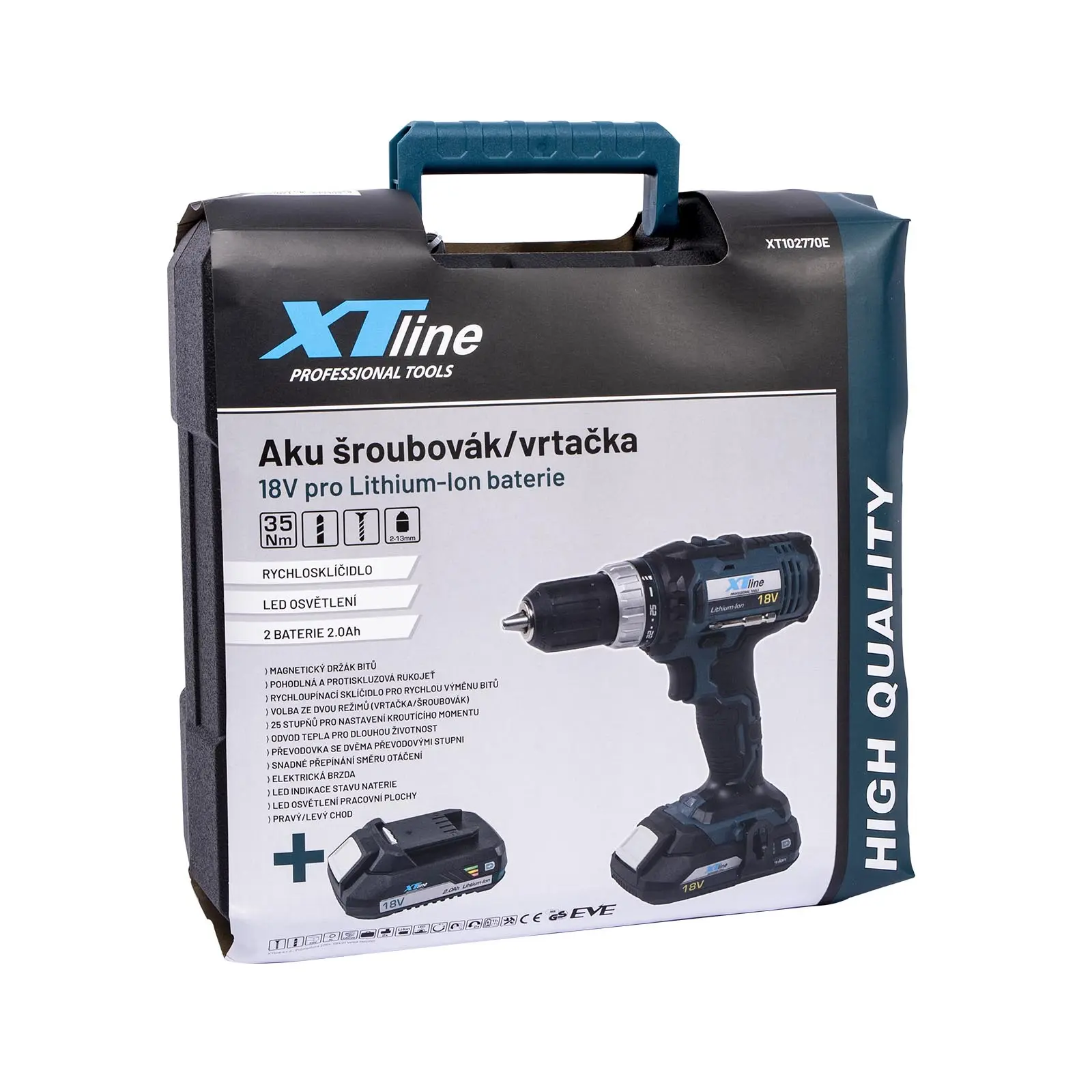 Akumulátorová vrtačka se díky ergonomicky pogumované rukojeti velmi pohodlně drží v ruce. Efektivnější práci ulehčuje motorová brzda, prachotěsná planetová převodovka s kovovými převody a rychloupínací sklíčidlo – snadnější nasazování a vyjímání bitů jednou rukou. Součástí balení je kufr, nabíječka 2.4 A, 2x aku baterie 2.0 Ah, magnetický nástavec na bity, sada vrtáků (2, 2.5, 3, 4, 5, 6 mm) a sada bitů.