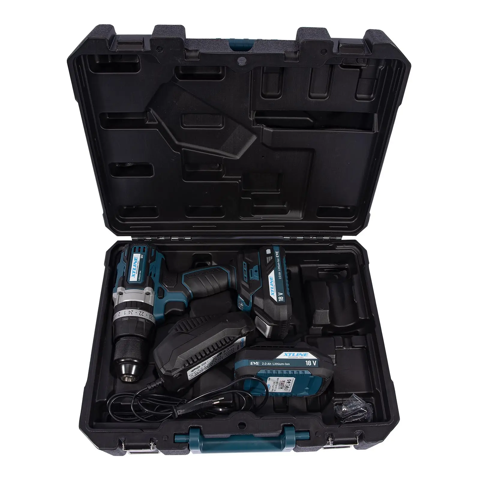 Akumulátorová bezuhlíková vrtačka je určena pro vrtání a šroubování dřevěných, kovových a stavebních materiálů. Vrtačka je vybavena bezuhlíkovým motorem a dvourychlostní planetovou převodovkou s kovovými převody. Součástí balení je 2x baterie 2.0 Ah, nabíječka 2.4 A a kufr.