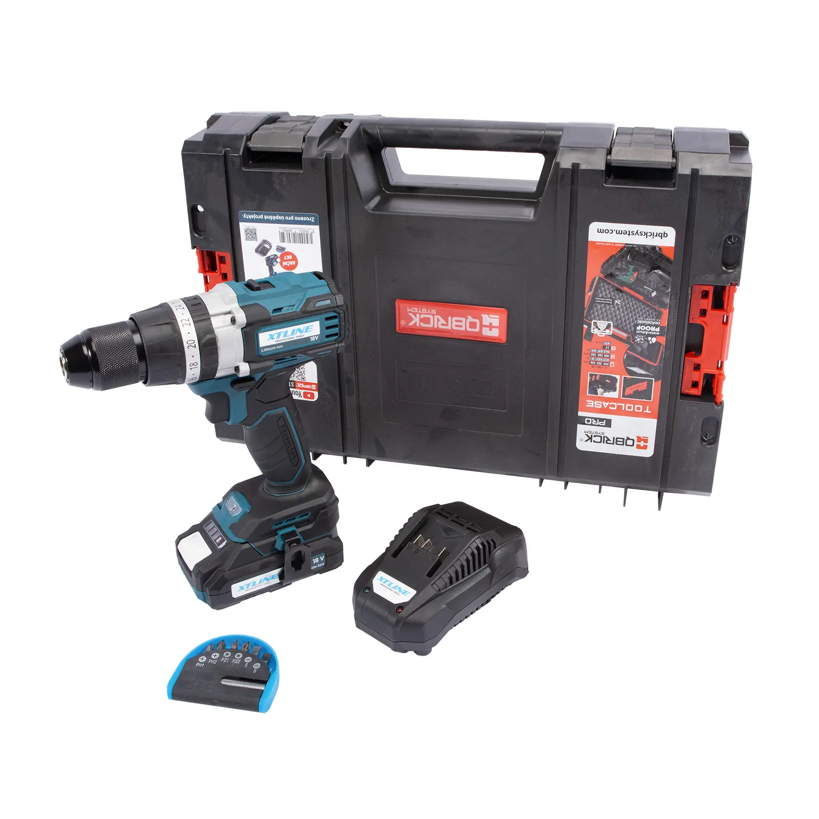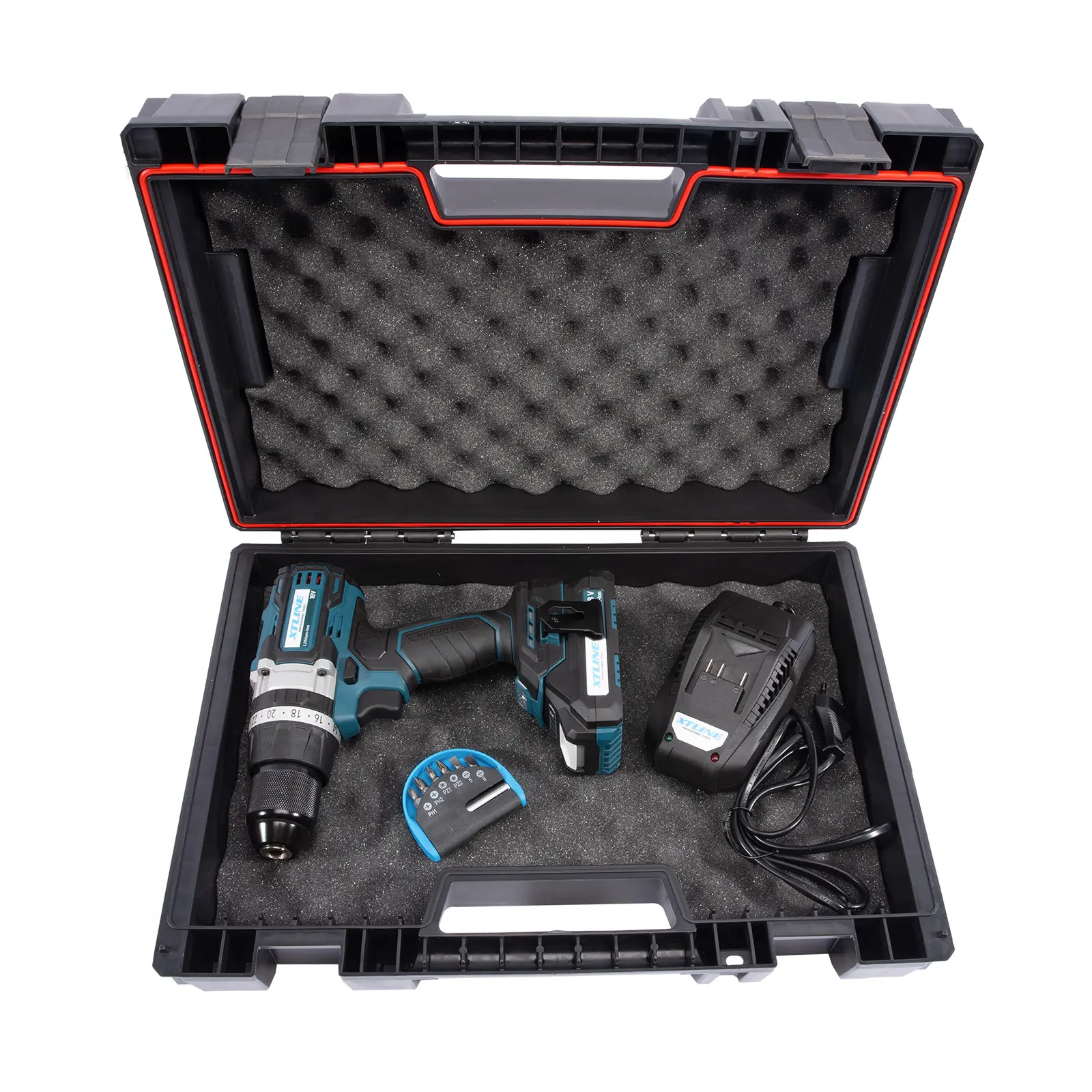 Akumulátorová bezuhlíková vrtačka je určena pro vrtání a šroubování dřevěných, kovových a stavebních materiálů. Vrtačku pohání dvourychlostní planetová převodovka s kovovými převody.