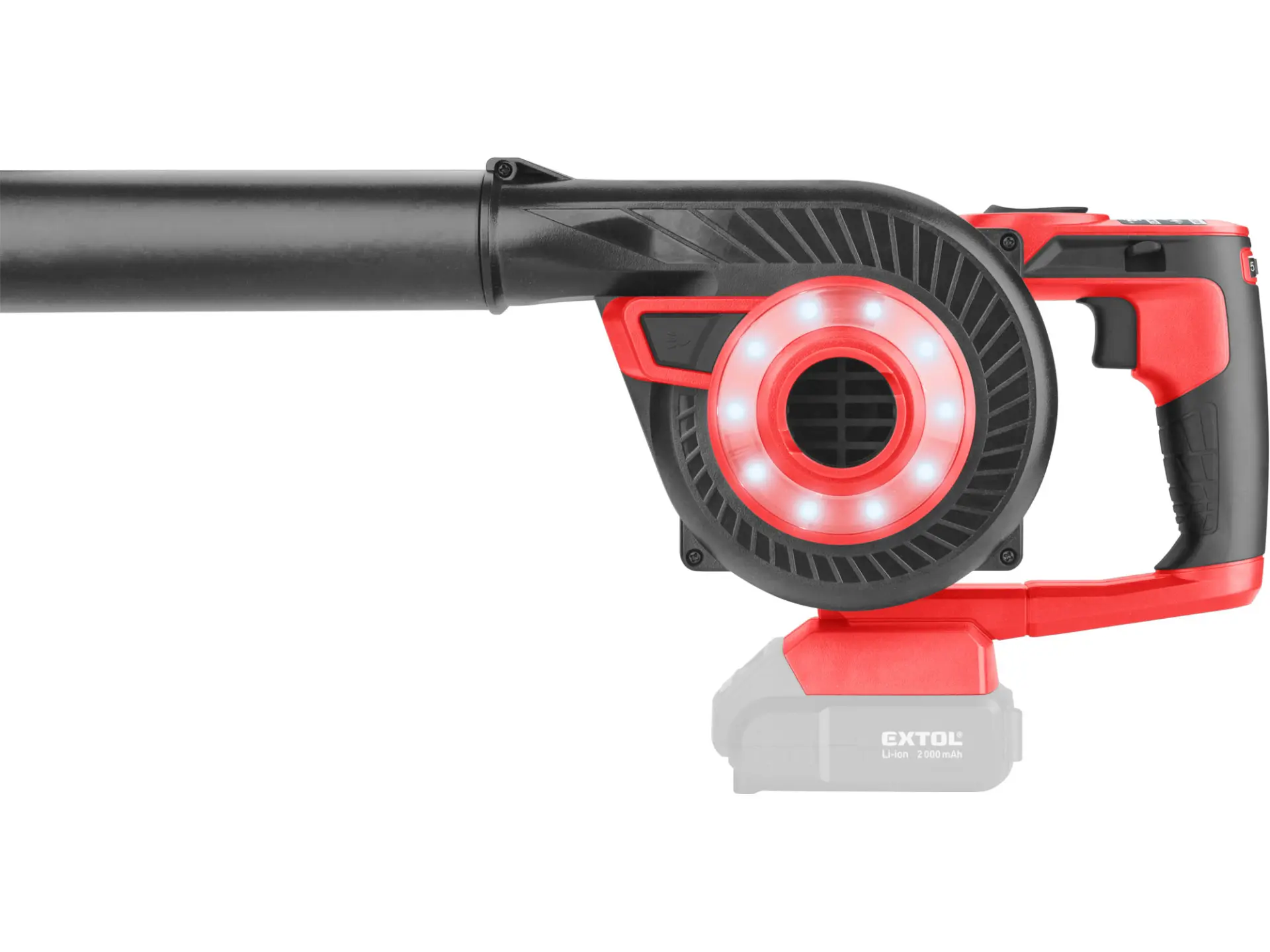 Aku fukar/vysavač 2v1 lze jednoduše přenastavit pro použití jako fukar, nebo jako vysavač se sběrným vakem. Fukarem lze z venkovních ploch proudem vzduchu komfortně odstranit např. zbytky trávy po sekání trávníku, piliny po řezání dřeva, suché jehličí či listí apod. Po přenastavení fukaru na vysavač se sběrným vakem lze vysát pevné částice např. piliny, jehličí a drobné listí z terasy, chodníku, v rozích apod. Sběrný vak lze snadno odejmout a vysypat. Stroj je vybaven regulací průtoku vzduchu dle potřeby a LED světlem pro nasvícení pracovního místa, což je velmi užitečné pokud potřebujete něco vysát v rohu. Když připojíte k fukaru přiložené nástavce, můžete ho použít pro nafukování lehátek, bazénů, kánoí, stanů apod. Díky zajímavému designu je stroj velmi malý a jednoduše přenosný. Pro běžnou práci dostačují jeden nebo dva 2000mAh akumulátory, které můžete rychle nabít v rychlonabíječce, pro náročnější nebo delší práci doporučujeme větší akumulátory s kapacitou 4000–8000mAh. Akumulátor má indikátor nabití a lze použít ve všech typech nářadí řady EXTOL SHARE20V. Díky použité Li-ion technologii je ho možné kdykoliv dobíjet, aniž by se tím snižovala jeho kapacita. Li-ion akumulátor ztrácí energii vlivem samovybíjení velmi pomalu a vydrží dlouho nabitý a připravený k použití.