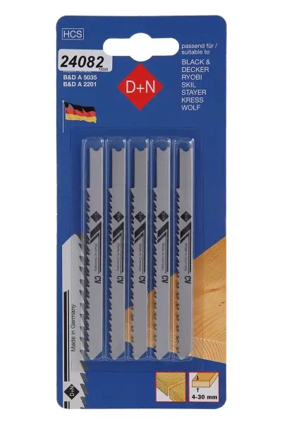 Materiál:WS ocel Pracovní délka 75mm Tlouštka: 1,45mm Rozteč zubů: 2,5mm Typ ozubení: Podbroušené Úchyt: Black&Decker Použití: tvrdé a měkké dřevo, dřevotříska, latová překližka, plasty.