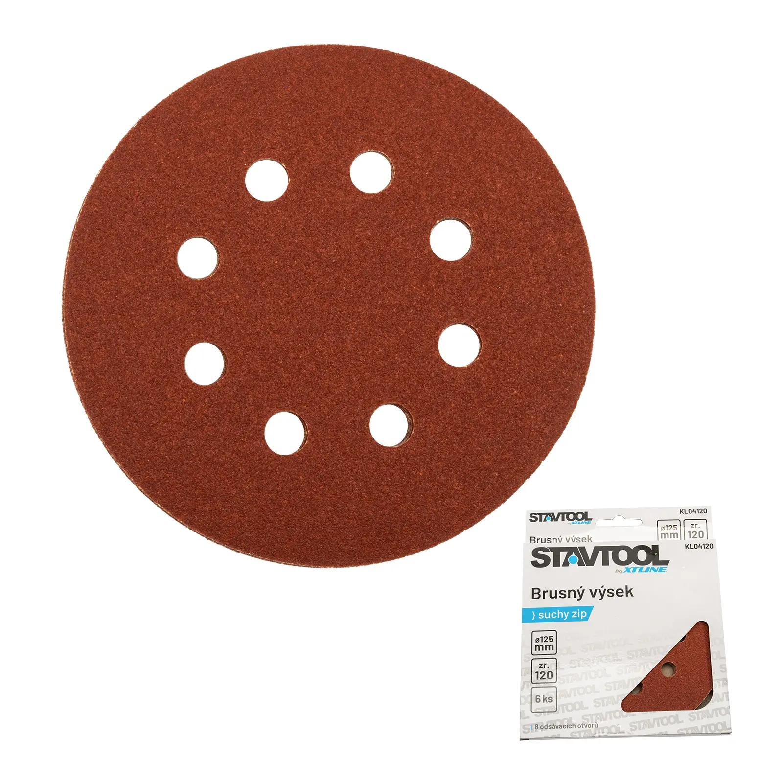 Kruhový brusný výsek s otvory pro celou řadu excentrických brusek. Kompatibilní se značkami: AEG, BlackDecker, Bosch, DeWalt, Festool, Hitachi, Kress, Makita, Metabo, Skil.
