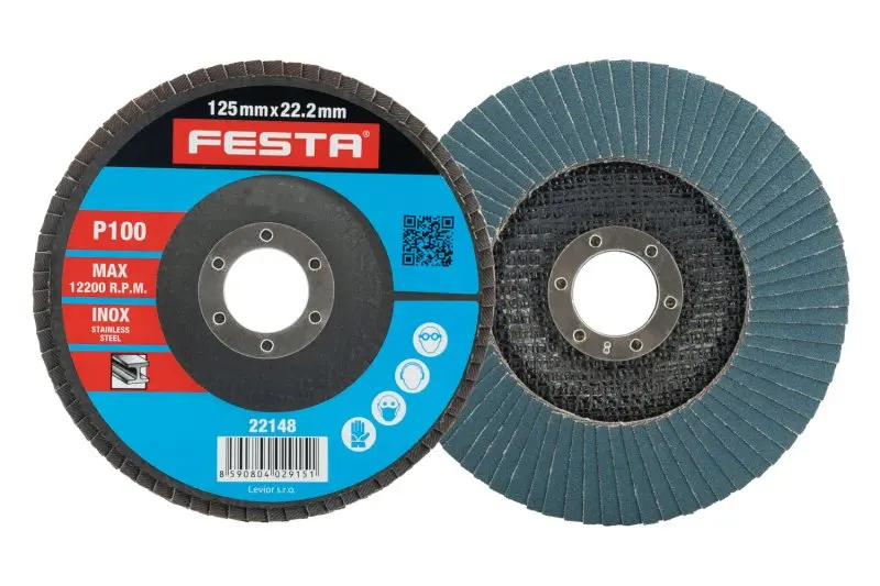 Zrnitost: 100 Druh Zrna: oxid zirkoničitý Pojivo: umělá pryskyřice Podkladový materiál: pružná tkanina-100% bavlna (240-260g/m2) Provedení: vyhnutý vnitřní průměr: 22,2mm Max. Pracovní rychlost: 80m/s Max. přípustné otáčky: 12200 1/min.