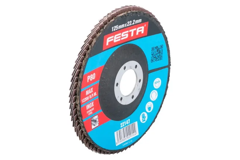 Zrnitost: 80 Druh Zrna: oxid zirkoničitý Pojivo: umělá pryskyřice Podkladový materiál: pružná tkanina-100% bavlna (240-260g/m2) Provedení: vyhnutý vnitřní průměr: 22,2mm Max. Pracovní rychlost: 80m/s Max. přípustné otáčky: 12200 1/min.