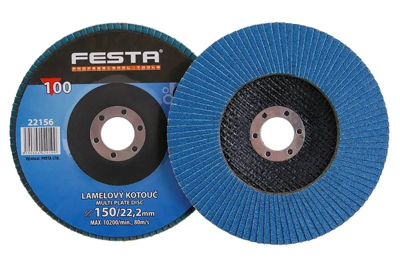Zrnitost: 100 Druh Zrna: oxid zirkoničitý Pojivo: umělá pryskyřice Podkladový materiál: pružná tkanina-100% bavlna (240-260g/m2) Provedení: vyhnutý vnitřní průměr: 22,2mm Max. Pracovní rychlost: 80m/s Max. přípustné otáčky: 10200 1/min.