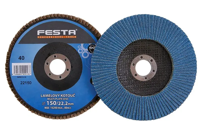 Zrnitost: 40 Druh Zrna: oxid zirkoničitý Pojivo: umělá pryskyřice Podkladový materiál: pružná tkanina-100% bavlna (240-260g/m2) Provedení: vyhnutý vnitřní průměr: 22,2mm Max. Pracovní rychlost: 80m/s Max. přípustné otáčky: 10200 1/min.