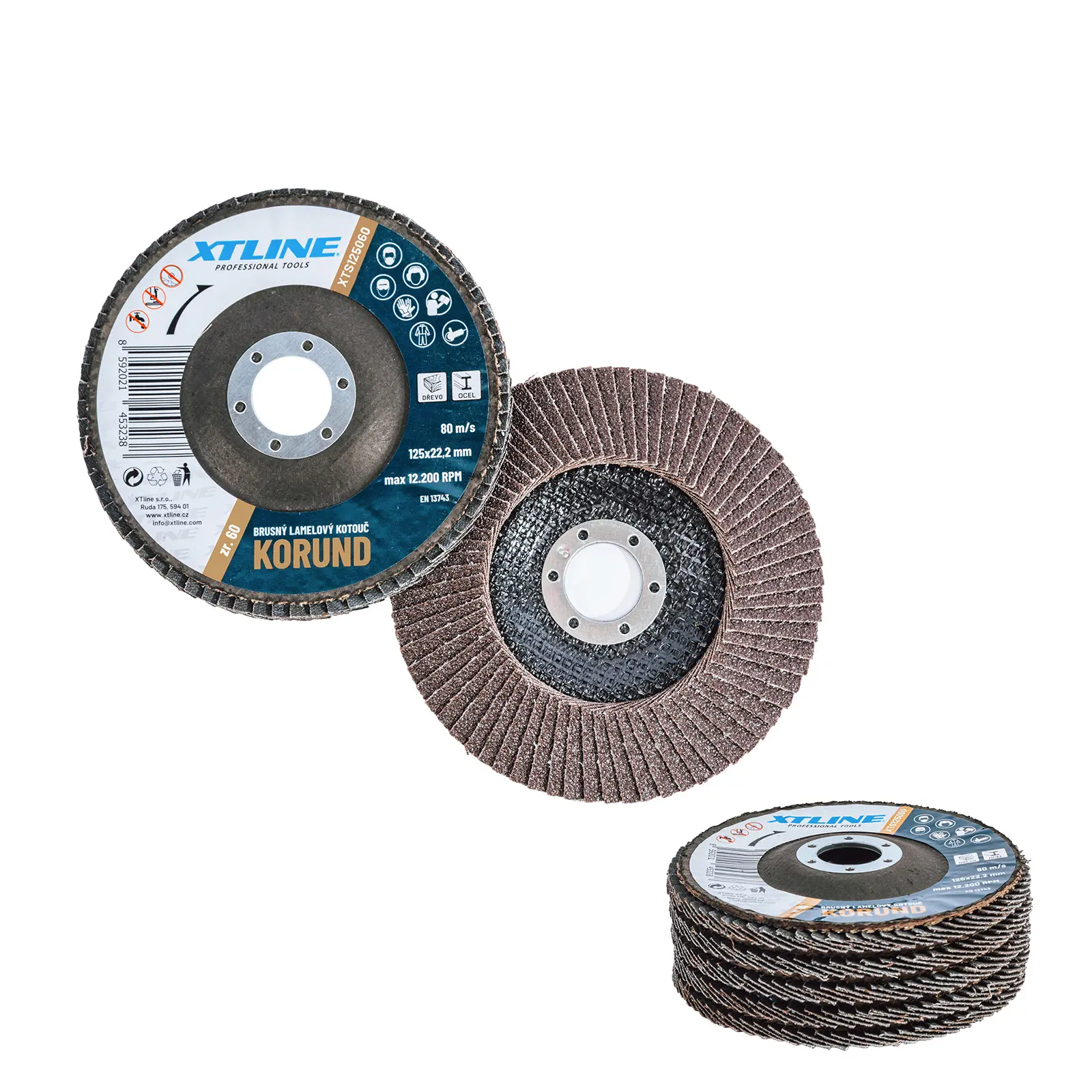 Lamelový brusný kotouč slouží k broušení dřeva, plastů, neželezných kovů, oceli; k odstraňování nátěrových hmot, laků a koroze; k broušení menších ploch, hran a svarů. Zkosený tvar brusné plochy usnadňuje broušení pod úhlem 15°, což má za následek rovnoměrný úběr materiálu po celé délce lamel a prodlužuje životnost kotouče. Brusný kotouč se skládá z celkem 72 brusných lamel (28x17 mm).