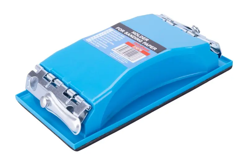 Držák brusného papíru, materiál: plast - kov - guma, ergonomický tvar pro snadný úchop a práci, kvalitní pružinové zámky umožňují snadnou výměnu a dostatečné udržení papíru, platna nebo brusné mřížky, gumová vrstva zajišťuje dobré přizpůsobení broušenému povrchu, použití : uchycení brusného papíru, plátna, brusné mřížky,...,rozměry : uvedeny v názvu výrobku.