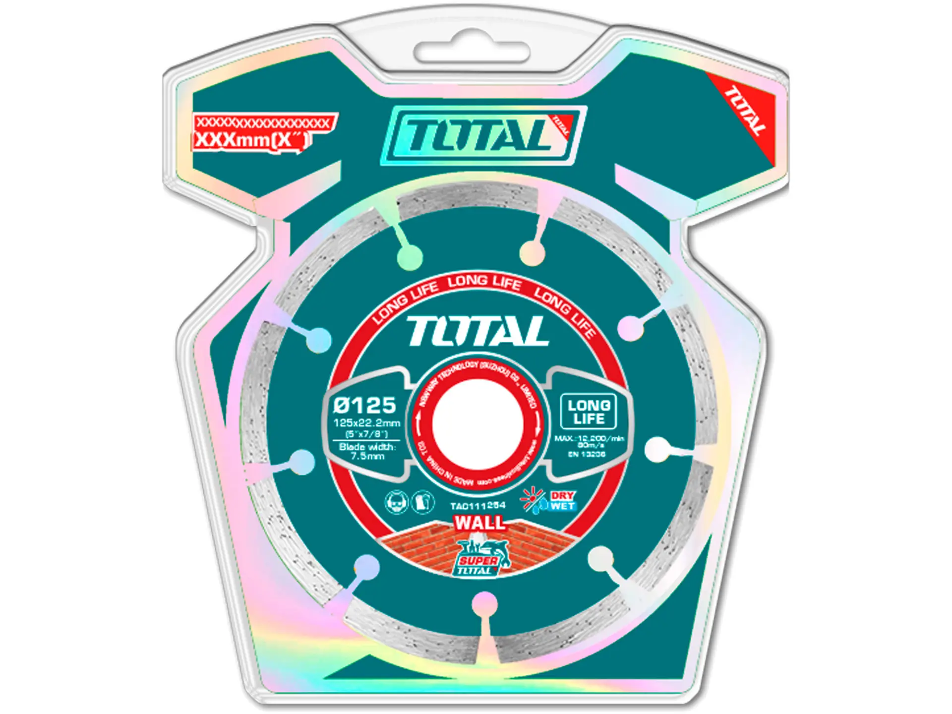 Kotouč na řezání do zdiva ze série industrial. Je určen pro suché i mokré řezání. Průměr kotouče je 125mmx22,2mm, tloušťka kotouče je 7,5mm. Maximální rychlost otáček 12200/min..
