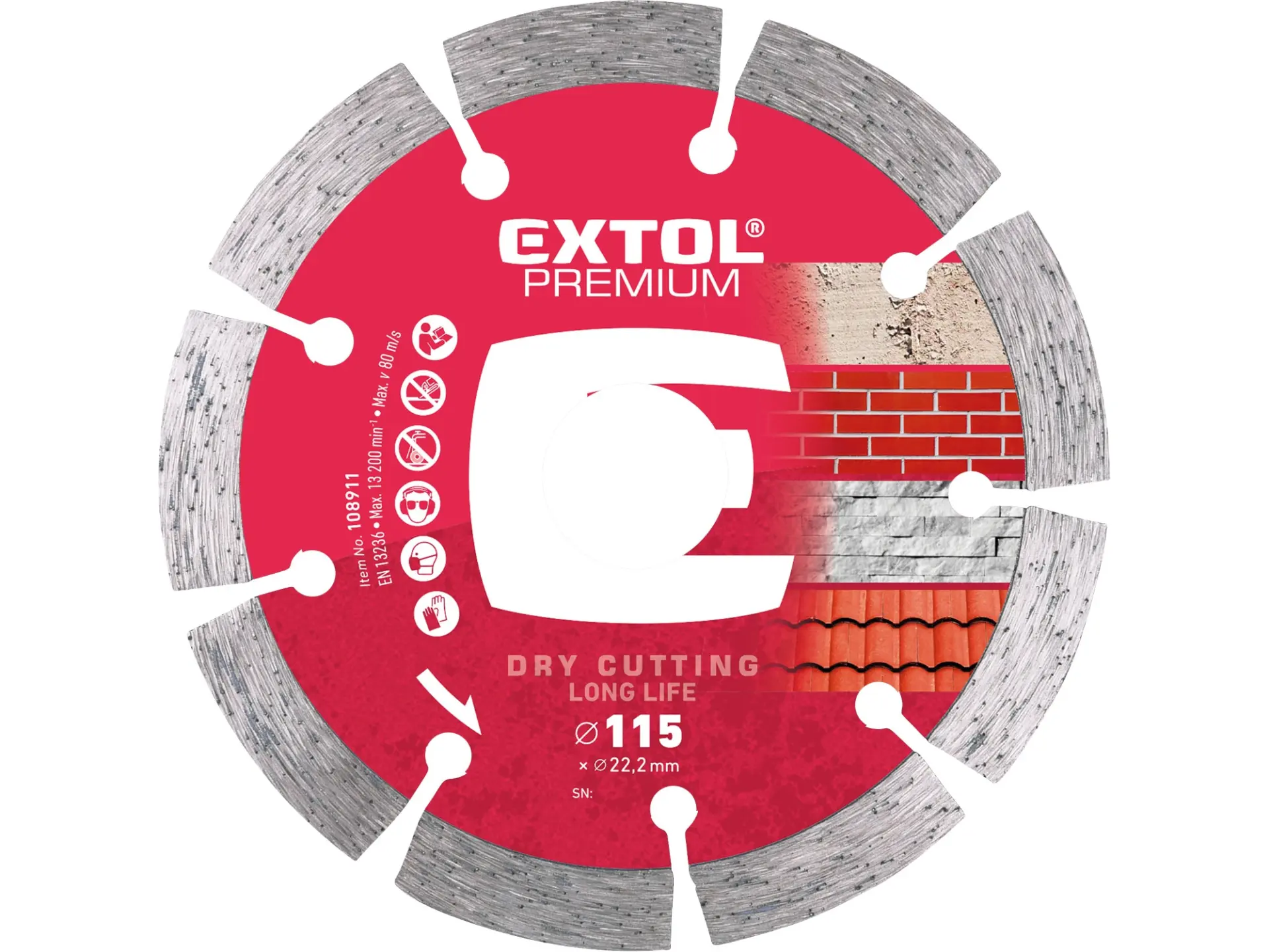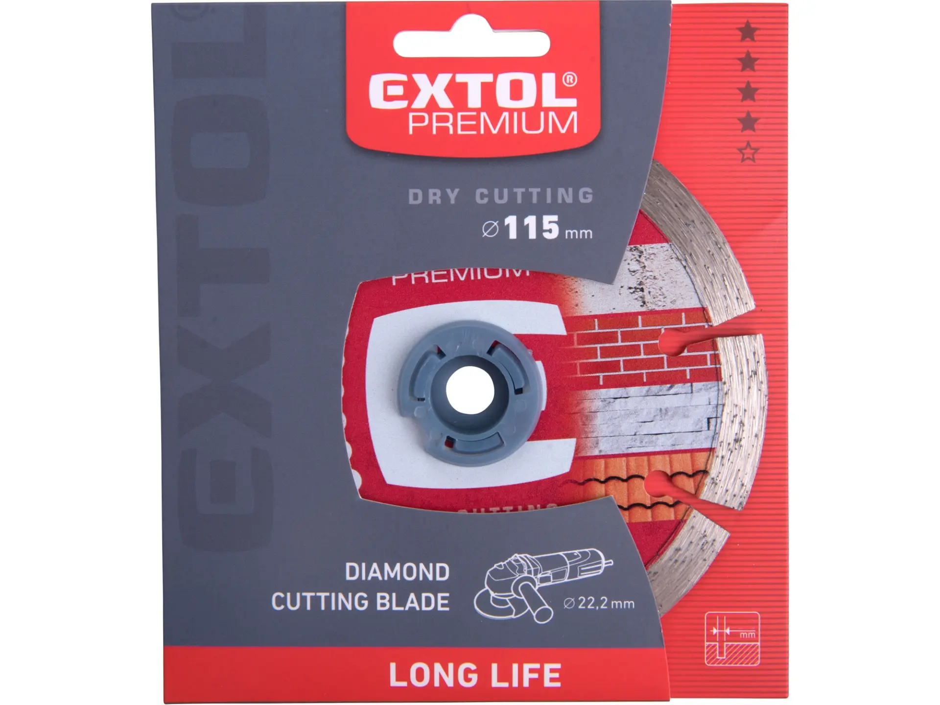 Řada diamantových řezných kotoučů LONG LIFE s prodlouženou životností pro profesionální a poloprofesionální použití. Díky složení diamantové směsi a výšce segmentu mají kotouče až o 50% větší řezný výkon než ostatní Extol Premium kotouče.