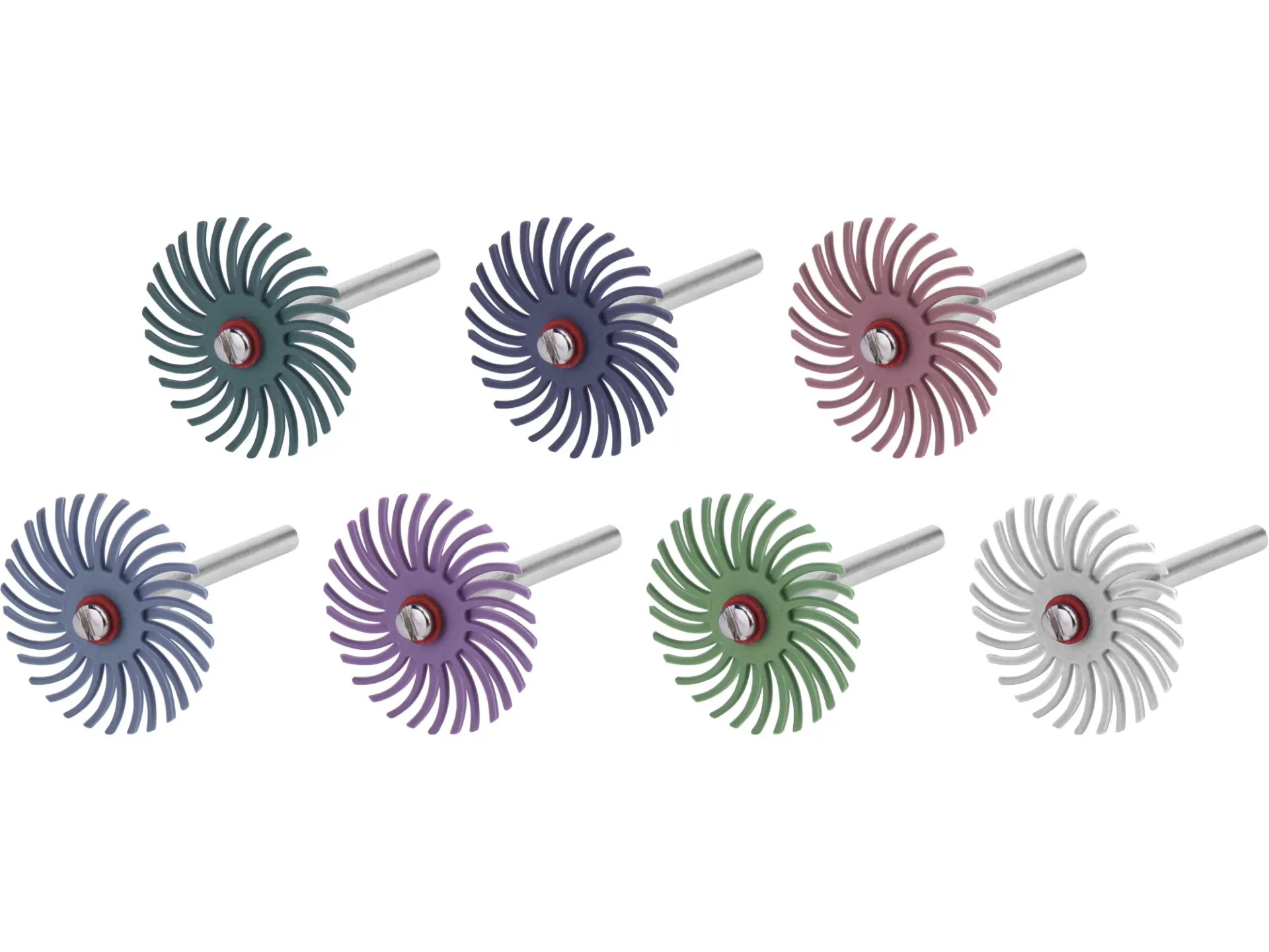 6ks v každé drsnosti, ⌀25mm, unašeč 9x, stopka ⌀3mm, plastová krabička s rozdělovači