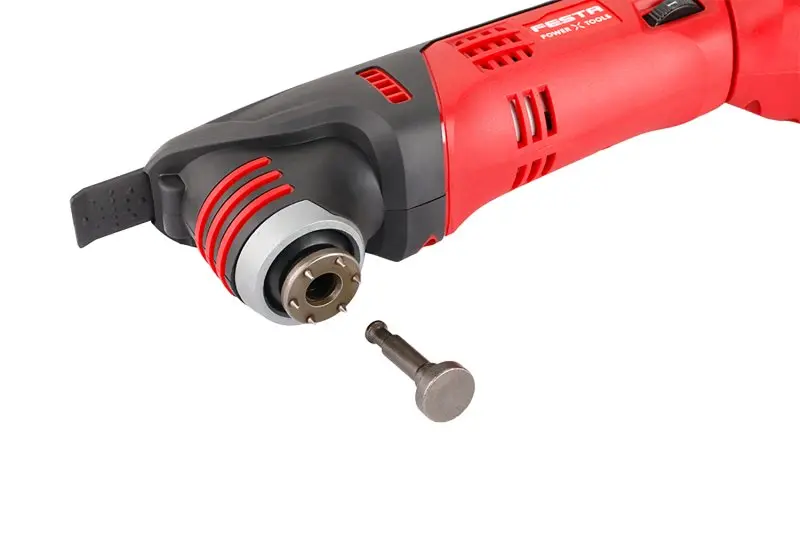 • pogumované tělo brusky, zeštíhlená úchopová část, regulace počtu kmitů, páková aretace čepu uchycujícího jednotlivé nástroje
