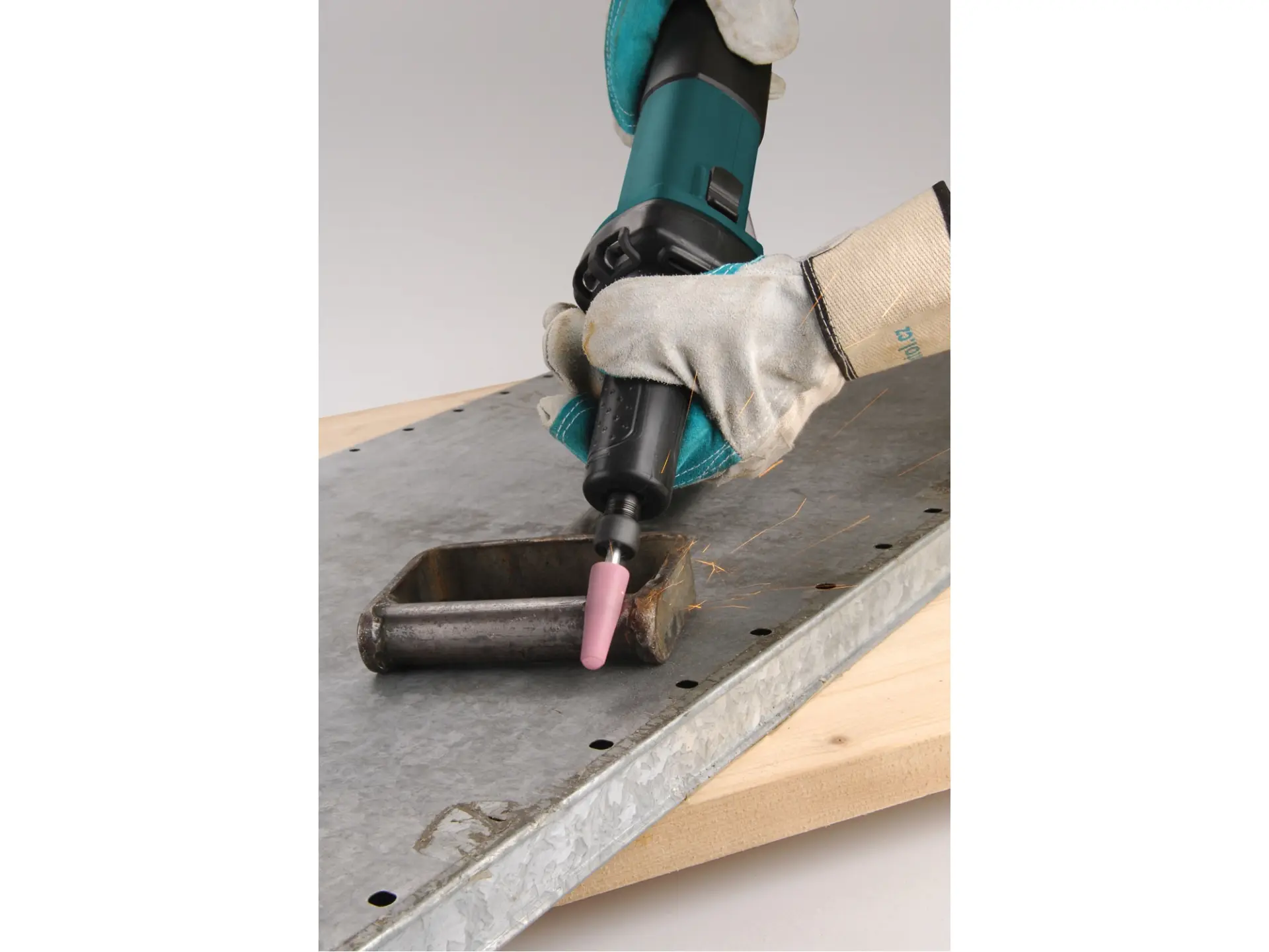 Přímá bruska je určena k opracovávání větších částí kovu korundovými brusnými nástroji nebo karbidovými frézami se stopkou o průměru 6mm. Jedná se např. o obrušování, vybrušování, odhrotování a frézování kovu. Brusku lze použít např. k zabrušování/frézování svárů, k zabrušování ostrých hran, vybrušování prorezlých nebo poškozených částí kovu, k broušení na špatně přístupných místech, kde není možný přístup s úhlovou bruskou apod.