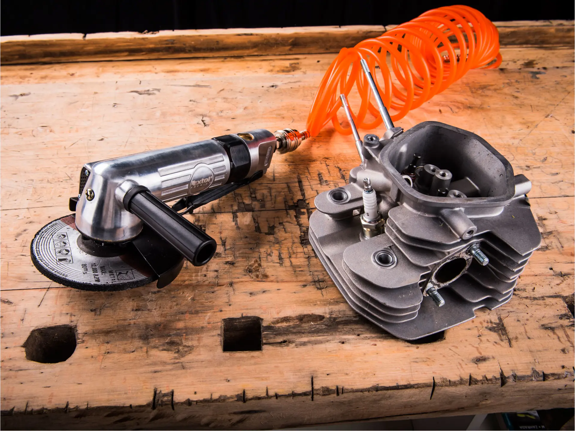 Pneumatická úhlová bruska je určena k řezání a broušení kovu a stavebních materiálů s použitím k tomu určených řezných a brusných kotoučů (125x22,2mm).