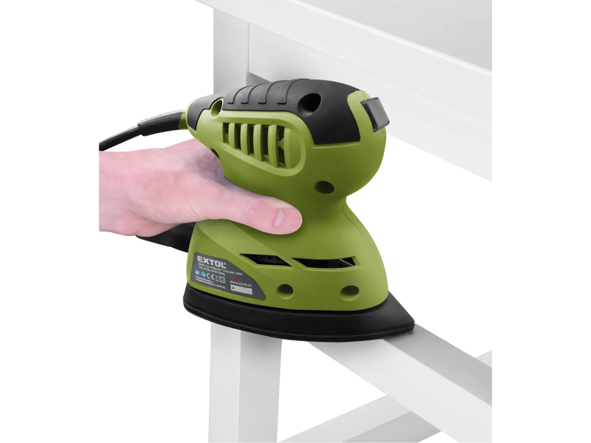 Jednoruční delta vibrační bruska je určena pro malé plochy a koutové broušení dřevěných materiálů, kovů, plastů, tmelů a laků. Dobře poslouží v obtížně přístupných místech jako např. broušení v rozích oken, broušení oblých povrchů a menších ploch.... Bruska není vhodná pro broušení sádrokartonu.
