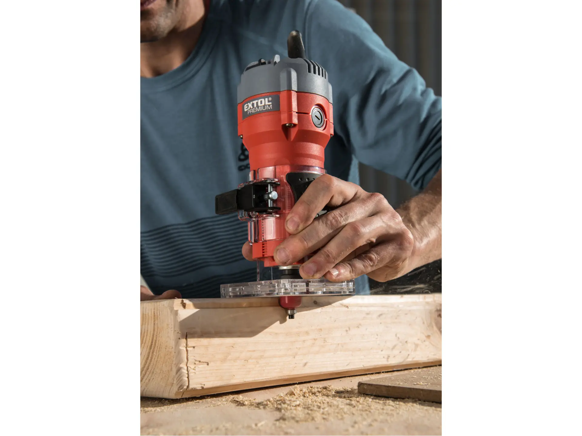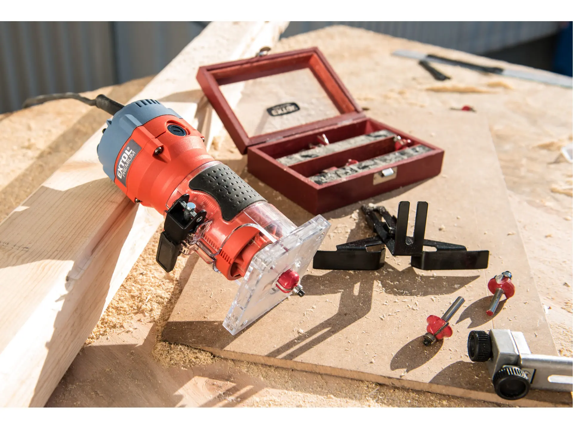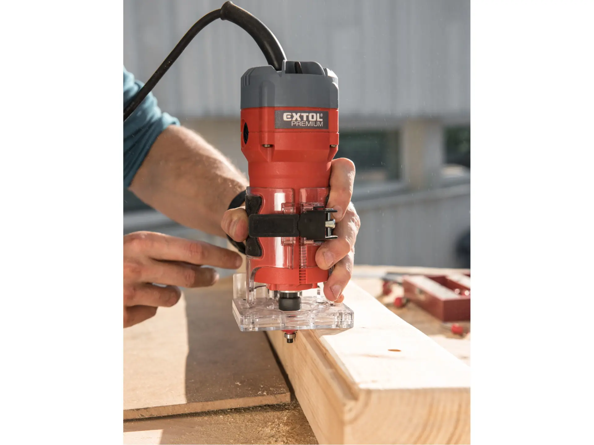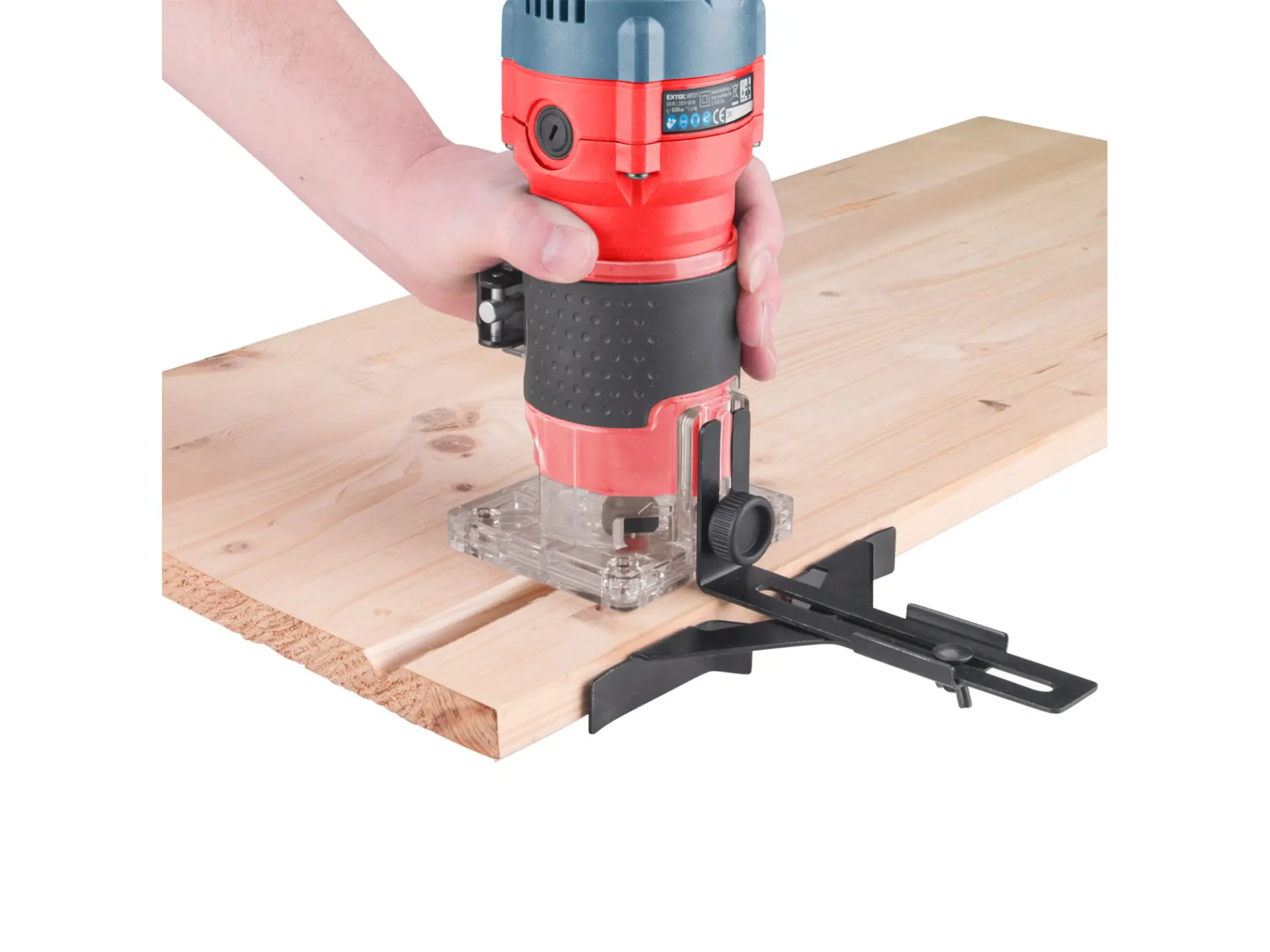 Ohraňovací frézka se vyznačuje jednoduchostí a spolehlivostí. Tato jednoruční minifrézka je určena k frézováni otvorů, hran a profilů do dřeva s různými tvary v závislosti na tvaru použité tvarové frézy. Malé rozměry a nízká hmotnost umožňují vedení frézky jednou rukou a snadnou manipulaci při práci. Vysoké otáčky zajistí dokonale hladký opracovaný povrch. K frézce jsou přibaleny tři různé vodítka pro vedení frézky při práci. Válečkové vodítko pro frézování oblých hran. Podélné vodítko pro frézování podél rovných hran a kružnic. Kopírovací vložka pro frézování dle přiloženého vzoru. Stojan frézky umožňuje nastavit hloubku frézování.
