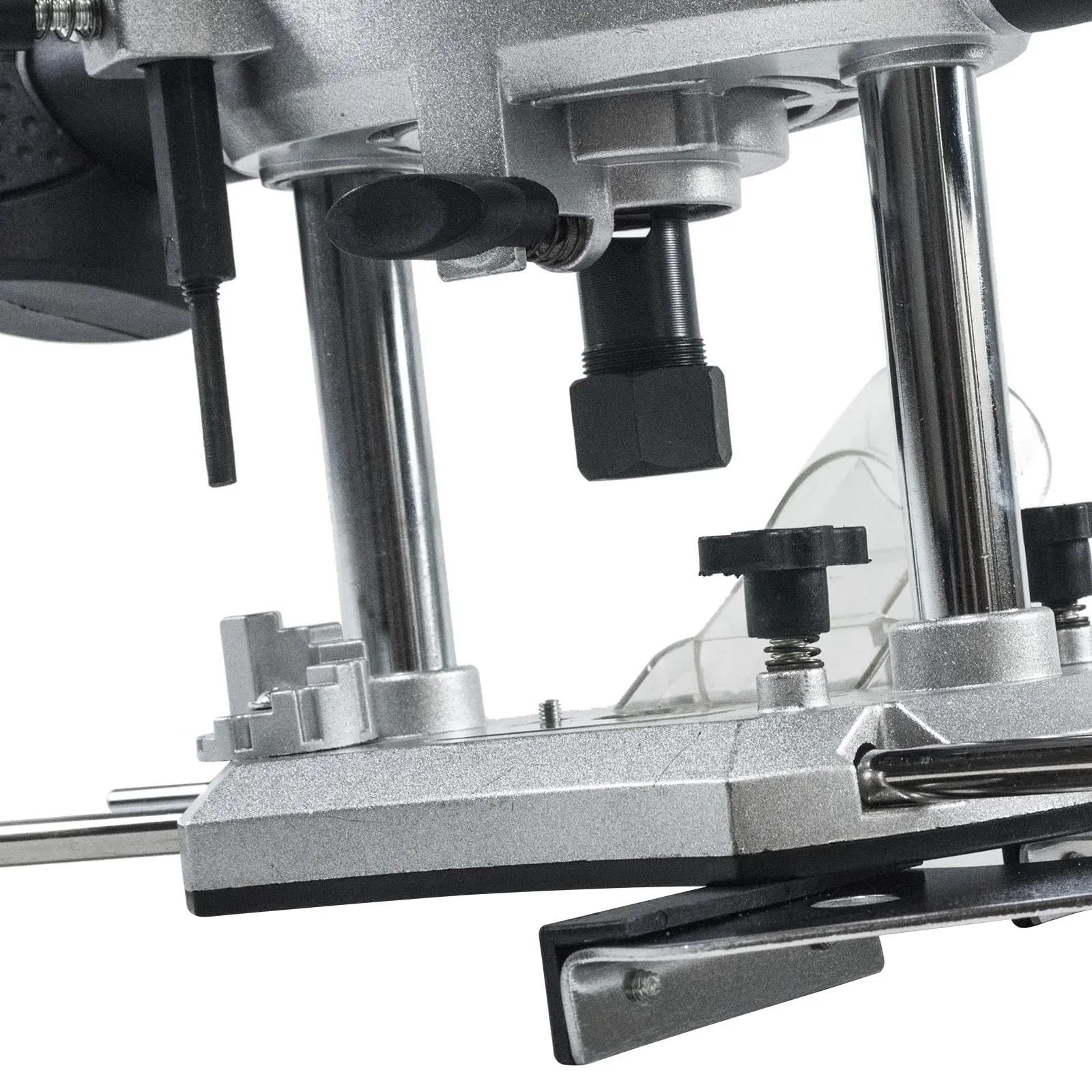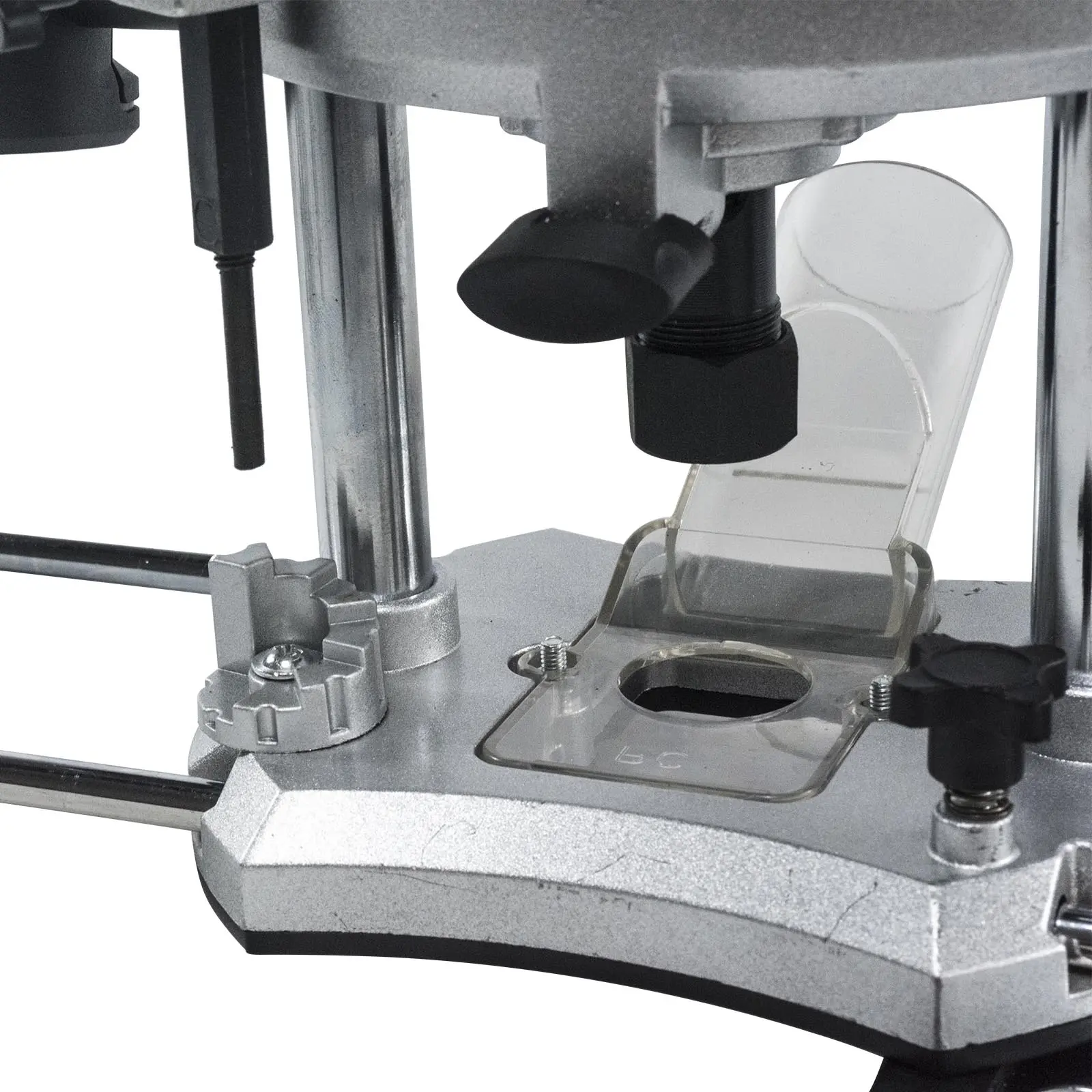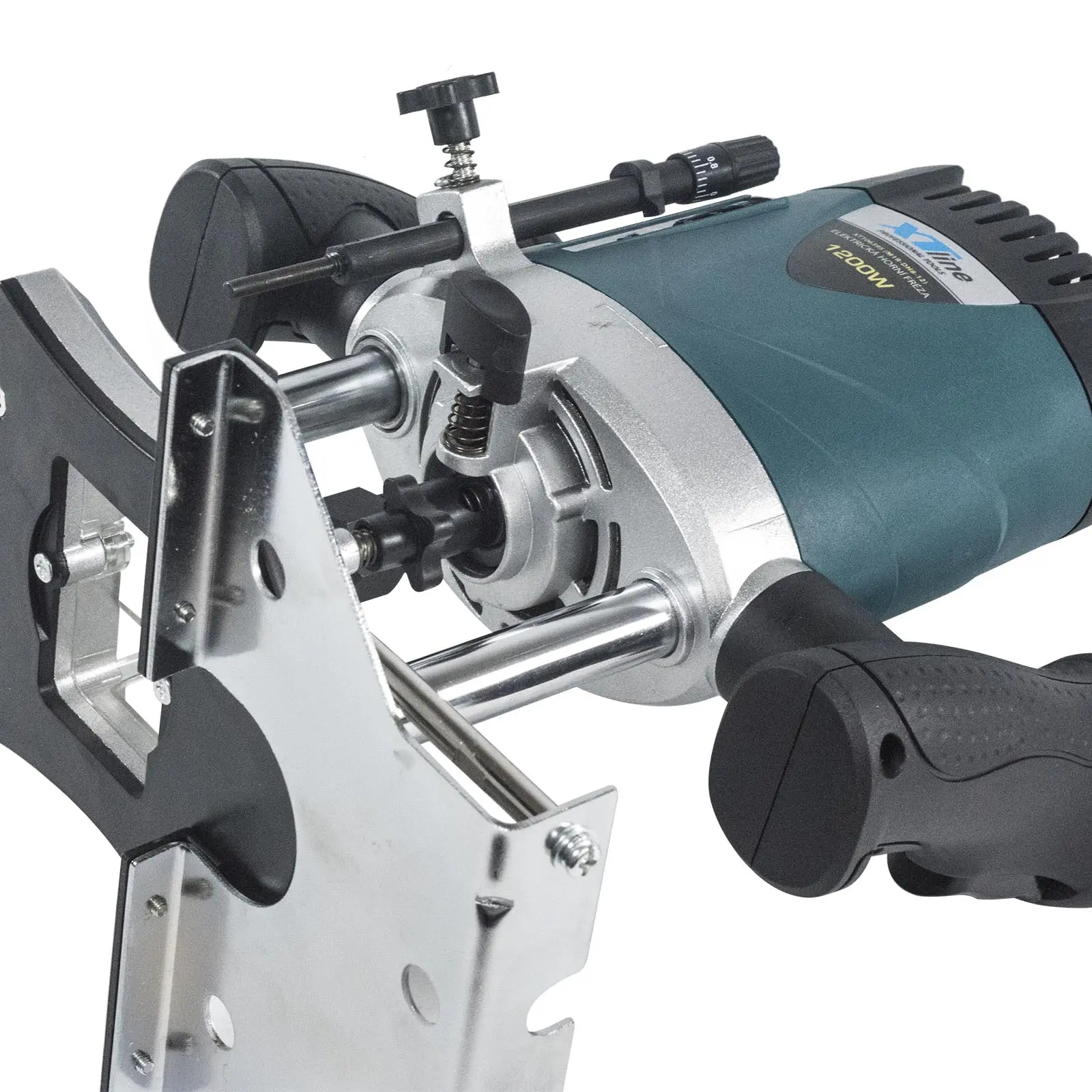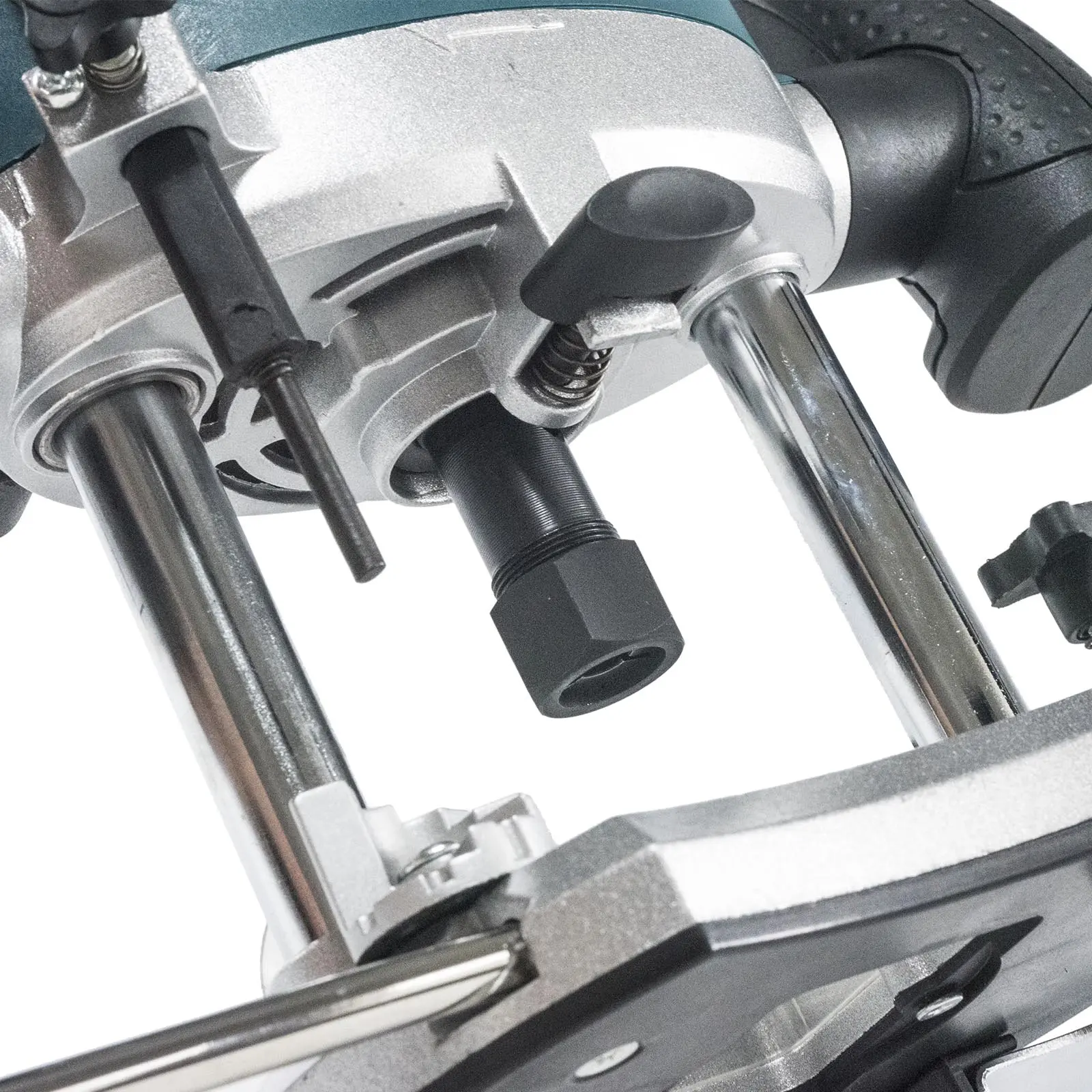 Silná obouruční horní frézka s kompaktním tvarem a jednoduchými ovládacími prvky slouží k frézování profilů, hran nebo otvorů do dřeva s různými tvary v závislosti na tvaru použité frézy. Upínání fréz pro velikost stopky 8 nebo 12 mm.