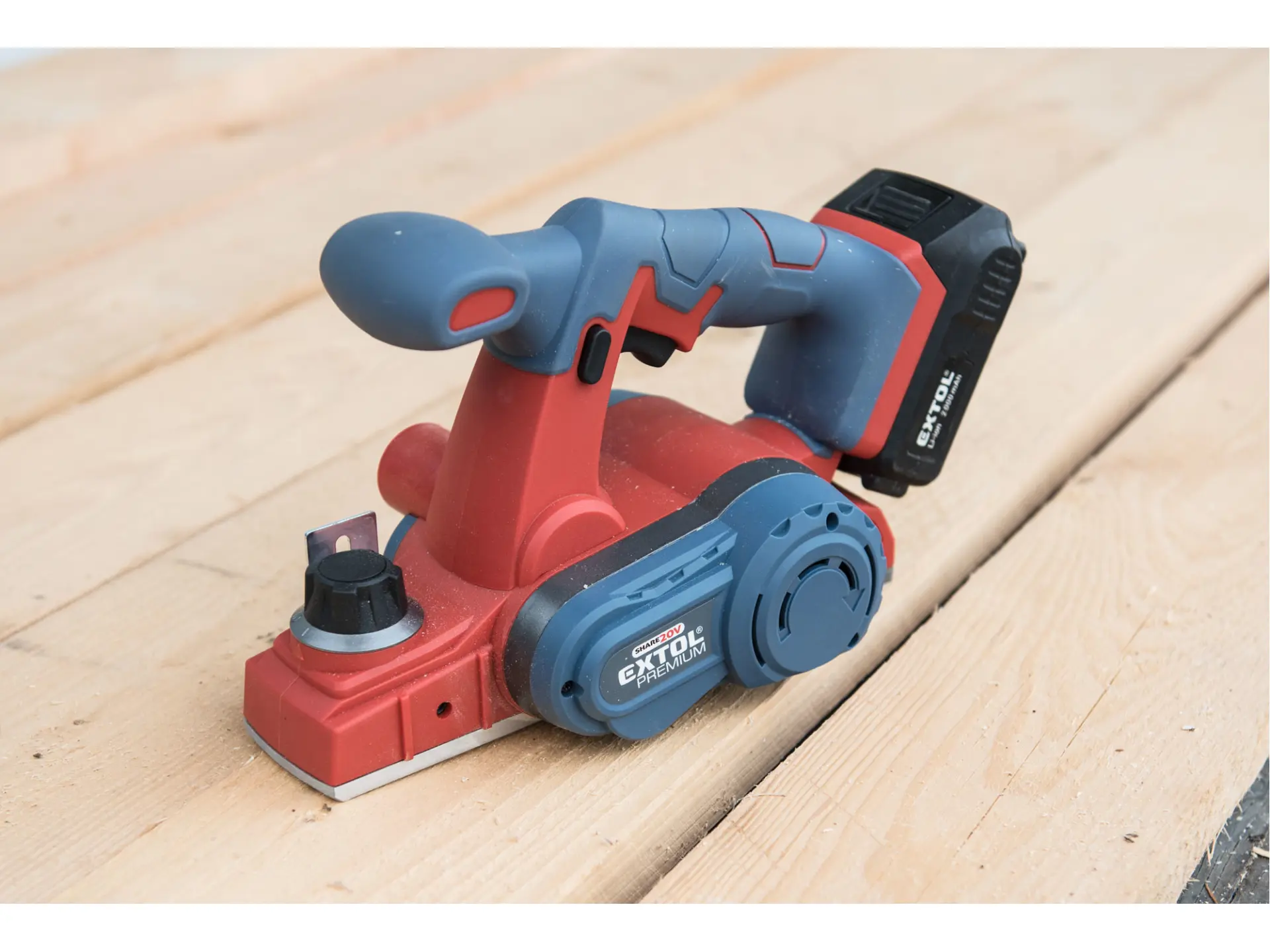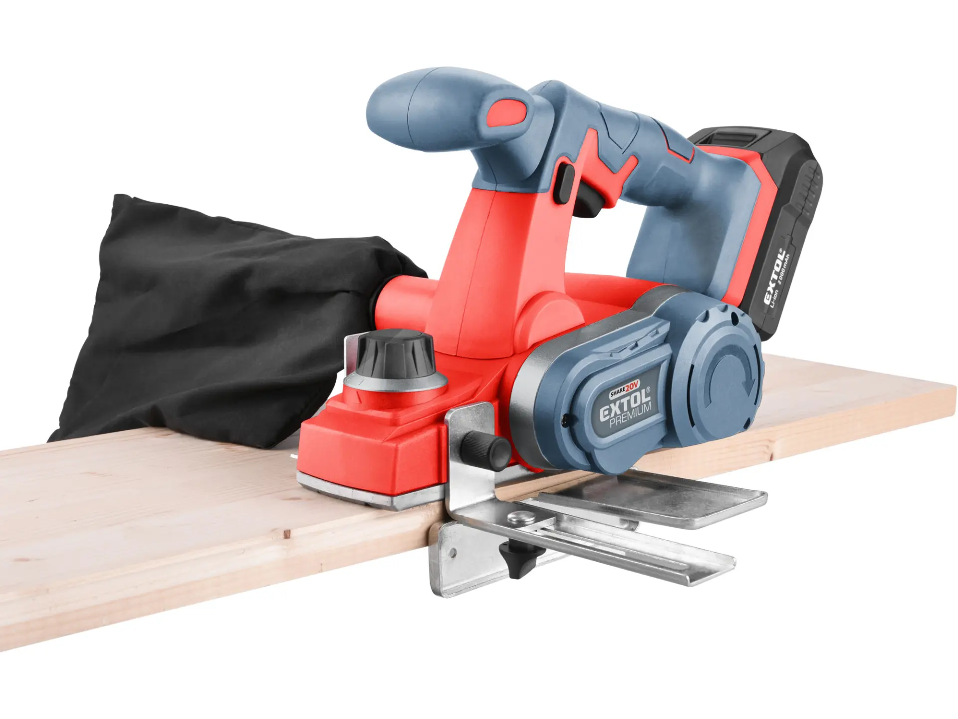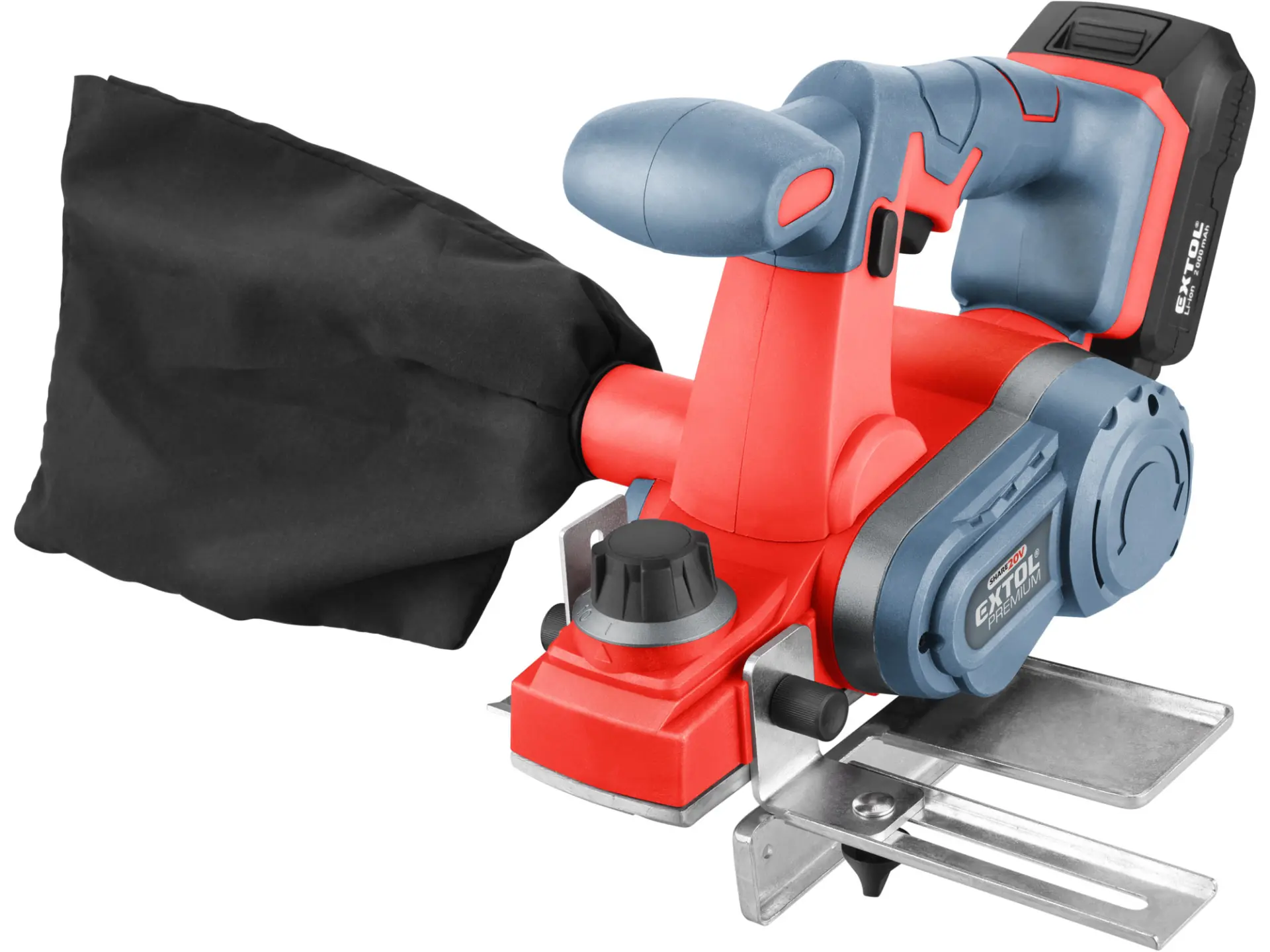 Aku hoblík Extol Premium kombinuje rychlost a výkonnost elektrického hoblíku s pohodlím akumulátorového nářadí. Výsledkem je rychlé a přesné odebrání materiálu bez překážejícího kabelu. Řezná hlava hoblíku má dva kvalitní břity. Ochranný trn v pracovní desce hoblíku chrání čepel i obráběný materiál tím, že udržuje čepel zvednutou a mimo kontakt s povrchem vašeho materiálu mezi řezy. Sběrný vak připojený na prachový výstup pomáhá udržovat pracovní prostor čistý a bez pilin. Přiložený adaptér pro falcování pomáhá vytvářet polodrážky ve vašich deskách a paralelní adaptér udržuje hoblík v nastavené vzdálenosti. Pro běžnou práci dostačují jeden nebo dva 2000mAh akumulátory, které můžete rychle nabít v rychlonabíječce, pro náročnější nebo delší práci doporučujeme větší akumulátory s kapacitou 4000–8000mAh. Akumulátor lze použít ve všech typech nářadí řady EXTOL SHARE20V. Díky použité Li-ion technologii je ho možné kdykoliv dobíjet, aniž by se tím snižovala jeho kapacita. Li-ion akumulátor ztrácí energii vlivem samovybíjení velmi pomalu a vydrží dlouho nabitý a připravený k použití.