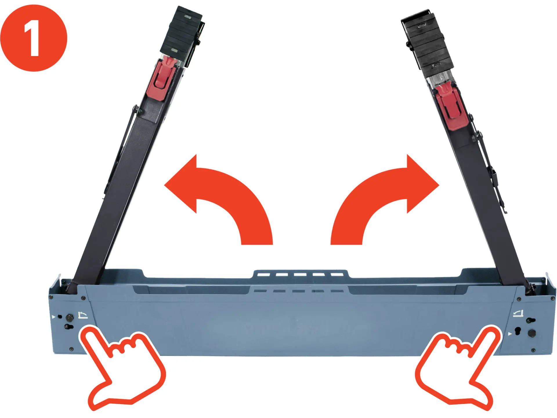 • na každý z konců je možno umístit boční úchyt s fixní šířkou 45mm k případnému uchycení trámkových dřevěných profilů a následnému rozšíření pracovní plochy mezi dvě kozy.