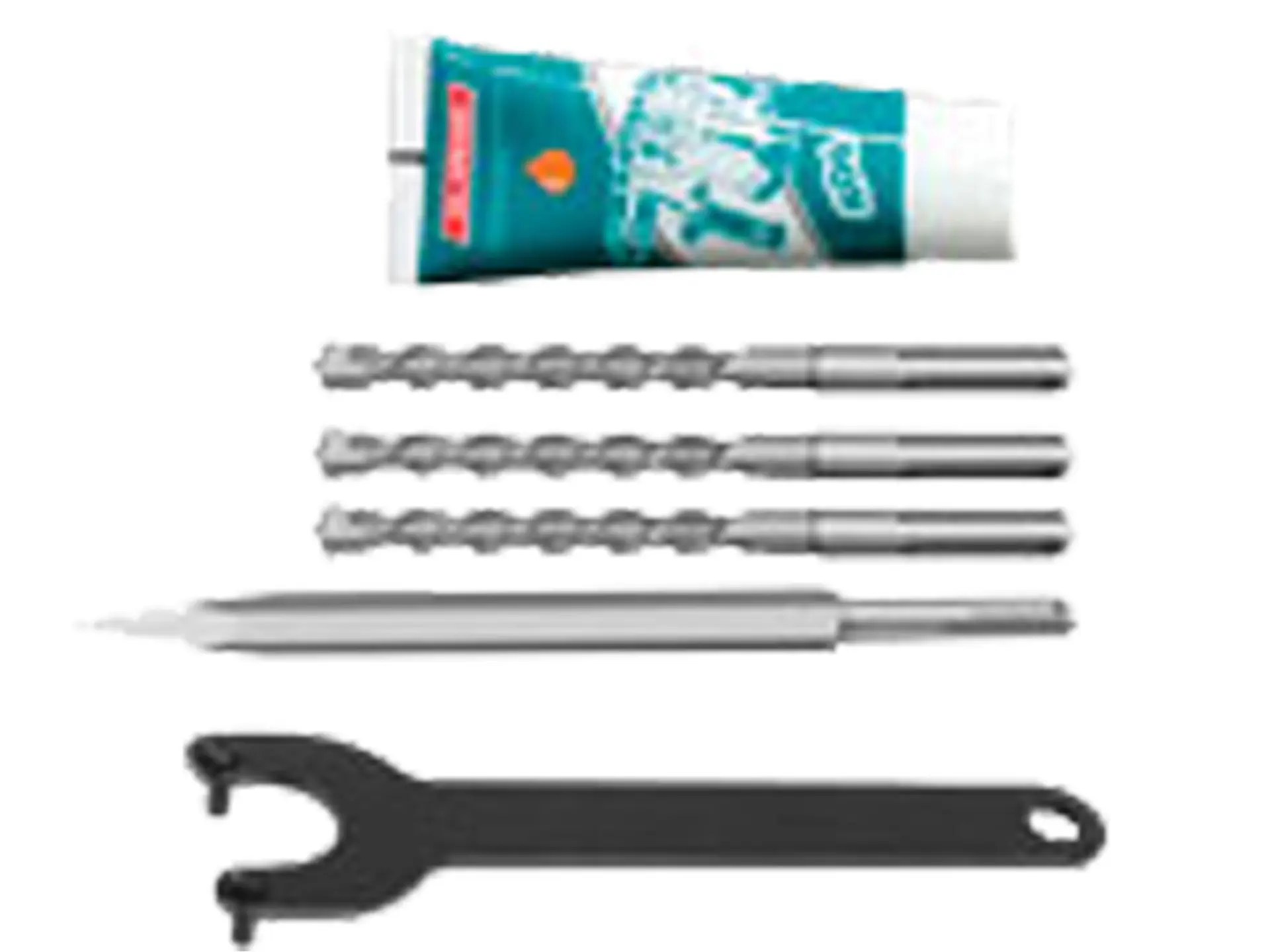 3x vrták, 1x sekáč, 1x vazelína, 1x klíč
