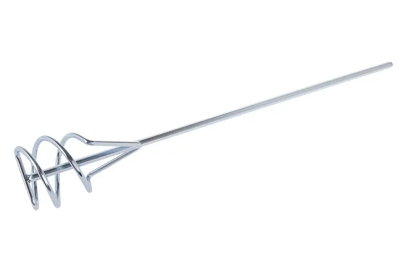 Míchadlo spirála - drát (metla), pozinkované, rozměr: 80 x 500 mm - šestihran, použití: pro důkladné rozmíchání lepidel na obklady, spárovaných hmot, lepících malt, hotových omítek, mazaniny, stěrkovacích hmot, vyrovnávacích hmot.