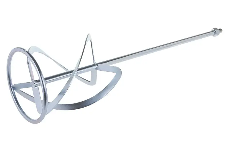 Míchadlo - levotočivé (míchací účinek shora tlačí směs dolů) - metla, pozinkované, rozměr : 160 x 600 mm - M14, použití : pro těžké materiály s vysokou viskozitou. Malty, betony, cementové a vápenné omítky, spojovací hmoty, mazaniny, epoxidové pryskyřice, živičné vrstvy.