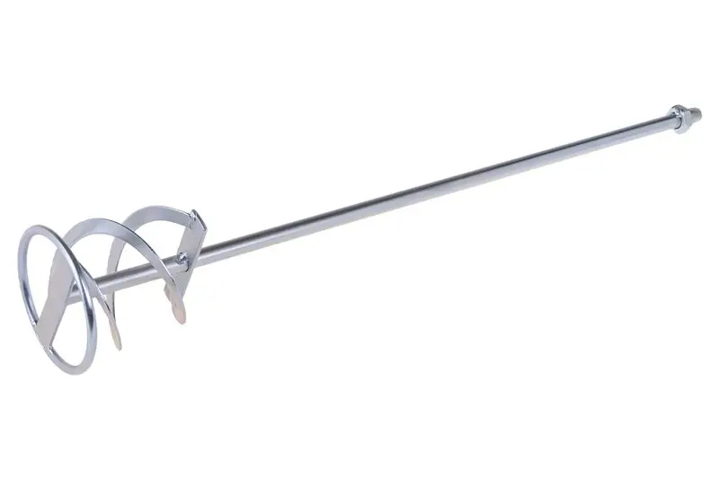 Míchadlo - pravotočivé ( metla ) (míchací účinek odspodu nahoru), pozinkované, rozměr: 100 x 600 mm - M14, použití: pro důkladné rozmíchání lepidel na obklady, spárovaných hmot, lepících malt, hotových omítek, mazaniny, stěrkovacích hmot, vyrovnávacích hmot.
