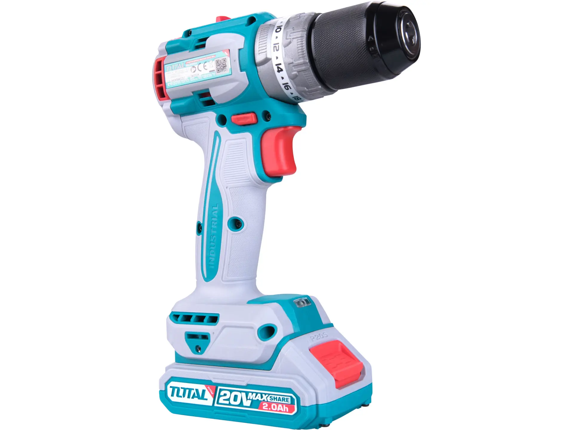 Nový typ aku vrtacího šroubováku s příklepem z řady industrial je vhodný pro všechny běžné pracovní úkoly a projekty v domácnosti, dílně a zahradě. Šroubovák má celokovovou hlavu, 22 stupňů utahovacích momentů + vrtání a vrtání s příklepem. Šroubovák má nový typ ergonomické antivibrační rukojeti pro příjemný úchyt a práci. Součástí šroubováku jsou dvě baterie 2000mAh a jeden kus rychlonabíječky. Jak baterie, tak nabíječka je kompatibilní se všemi stroji Total využívajícími baterie. Vše je uloženo v plastovém kufru pro snadnou přepravu. Je určen pro:- vrtání bez příklepu do dřeva, plastu i kovů- vrtání s příklepem do zdiva- utahování a povolování šroubů nebo vrutů• Nepřítomnost napájecího kabelu poskytuje svobodu a komfort při práci a manipulaci s nářadím. Nářadí lze tak s výhodou použít pro práci v místech, kde není možné použít elektrické nářadí s napájecím kabelem z důvodu nedostupnosti distribuční elektrické sítě. Toto nářadí je vybaveno systémem ochrany nářadí a akumulátoru, který v případě hrozícího přetížení nebo přehřátí automaticky odpojí napájení motoru. Systém tak chrání životnost nářadí i akumulátoru.