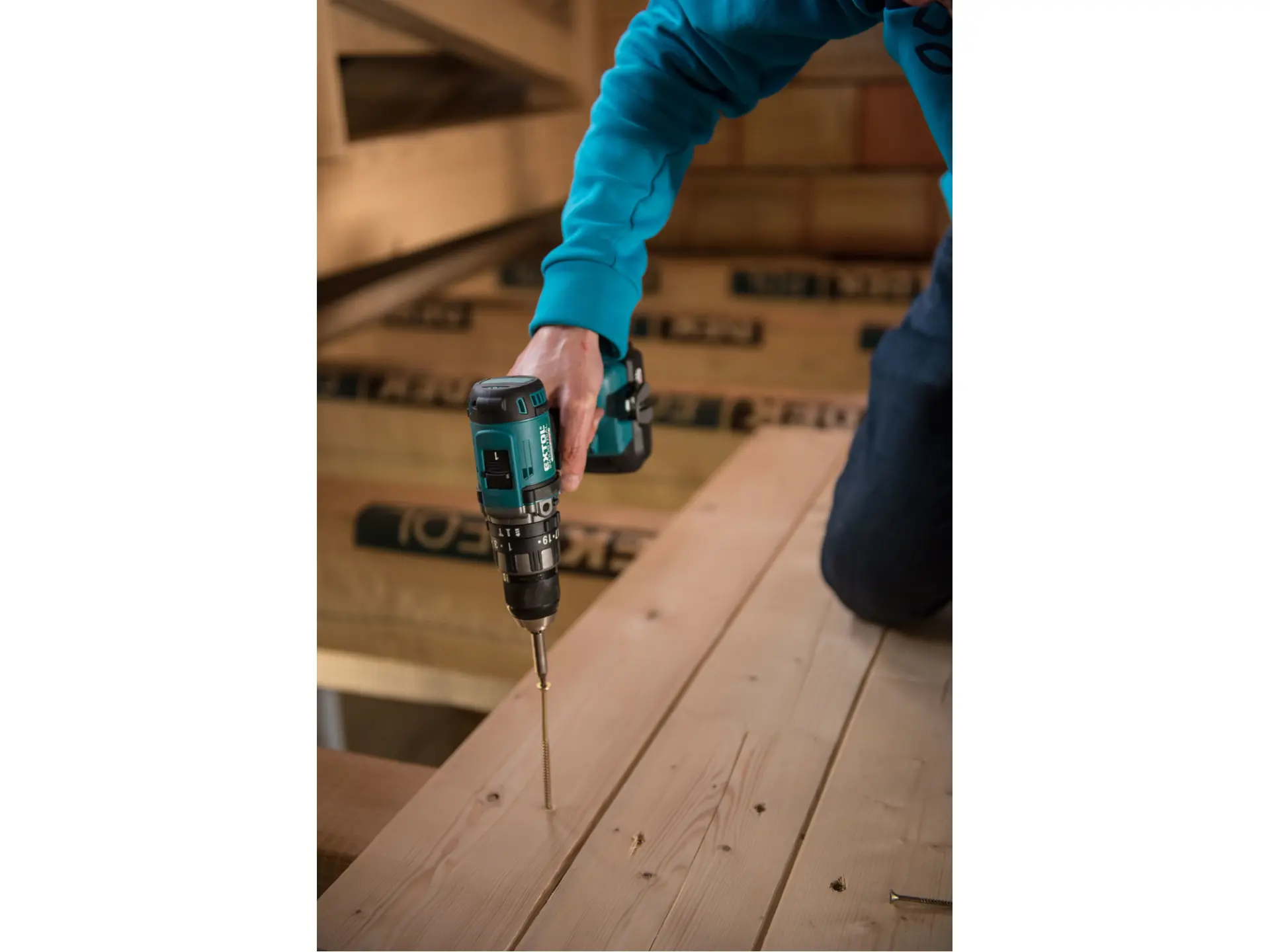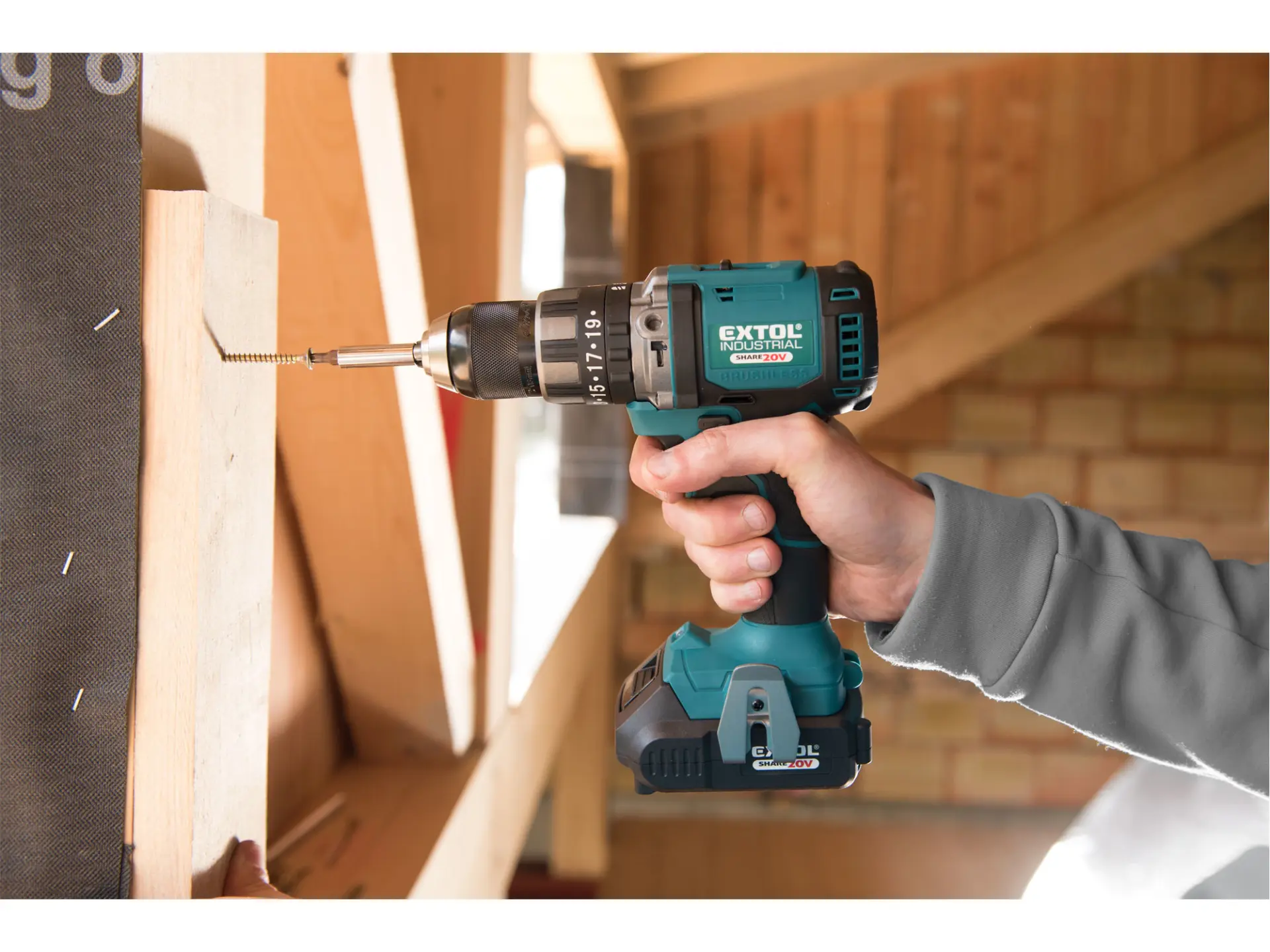 Lehký a výkonný dvourychlostní vrtací aku šroubovák s příklepem Vám poskytuje vysoký vrtací výkon při vrtání do široké škály materiálů – ocel, kovy, dřevo, plast, ale s příklepem také do zdiva. Je určen pro náročné práce a díky svému příjemnému designu se s ním velmi dobře pracuje i při dlouhodobém používání. Vrtačka je poháněná nejmodernějším „brushless" motorem. Tento nový typ motoru má vyšší životnost, je výkonnější a má menší spotřebu el. energie než klasické motory s uhlíkovými kartáči. Celokovová převodovka s 5ozubenými kolečky je speciálně navržena pro vysoký kroutící moment a zajišťuje bezchybný chod i při vysoké zátěži. Vrtáky se upínají do kvalitního celokovového sklíčidla s aretací. Díky plynulému nastavení momentů, lze využít celý rozsah stupnice a nejen vyznačených 20 stupňů. Vrtačka má 3 režimy práce: vrtání, šroubování a vrtání s příklepem. Mechanický příklep je vynikající pro vrtání do tvrdších materiálů. Integrovaná LED svítilna umístněná na spodní části rukojeti osvětluje pracovní prostor a pro zlepšení orientace v tmavých prostorech má zpožděné vypnutí. Pro běžnou práci dostačují jeden nebo dva 2000mAh akumulátory, které můžete rychle nabít v rychlonabíječce, pro náročnější nebo delší práci doporučujeme větší akumulátory s kapacitou 4000–8000mAh. Akumulátor lze použít ve všech typech nářadí řady EXTOL SHARE20V. Díky použité Li-ion technologii je ho možné kdykoliv dobíjet, aniž by se tím snižovala jeho kapacita. Li-ion akumulátor ztrácí energii vlivem samovybíjení velmi pomalu a vydrží dlouho nabitý a připravený k použití.