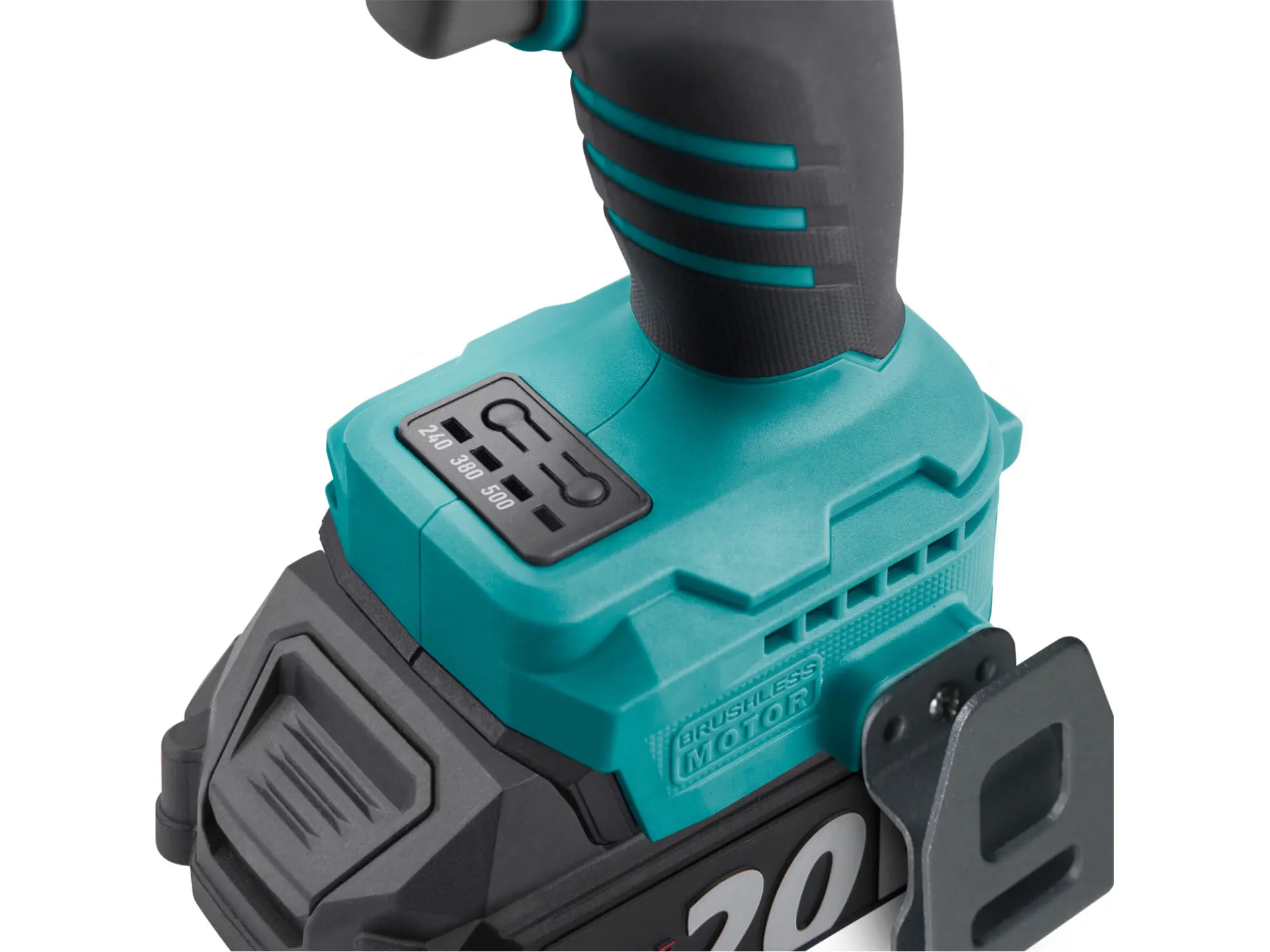Výkonný rázový brushless aku utahovák s vysokým max. kroutícím momentem 500Nm Vám poskytuje výkon, který potřebujete k dokončení široké škály utahovacích operací – utahování a povolování šroubů. Utahovák je poháněná nejmodernějším „brushless" motorem. Tento nový typ motoru má vyšší životnost, je výkonnější a má menší spotřebu el. energie než klasické motory s uhlíkovými kartáči. Utahovací moment lze elektronicky nastavit na 3 různé momenty: 240/380/500Nm, při povolování pracuje utahovák na nejvyšší otáčky a můžete si zapnout funkci AUTO STOP, která při povolování zastaví utahovák po pár sekundách, což je ideální pro krátké šrouby. Kombinace vysokého momentu s rázovým mechanismem je zde zásadní, rázový úderný princip umožňuje povolit velmi pevně utažené nebo zkorodované spoje mnohem efektivněji než stejnoměrný krouticí moment, přičemž šetří jak zápěstí uživatele, tak samotný nástroj a spojovací materiál tím, že generované síly působí v krátkých, přesně cílených impulsech místo kontinuálního namáhání. Rázový mechanismus také zvyšuje sílu utahováku při šroubování a zároveň snižuje spotřebu baterie. Proto je při šroubování mnohem efektivnější než aku vrtačka a také zašroubuje více šroubů na jedno nabití baterie. Celokovová převodovka uložená v kovovém pouzdru zajišťuje bezchybný chod při i vysoké zátěži a přispívá k lepšímu odvodu tepla vznikajícího při práci. Svítilna osvětluje pracovní místo a má zpožděné vypnutí. Utahovák má gumové plošky pro ochranu odkládací plochy před nárazy a celá rukojeť je pokryta gumou, která snižuje přenos vibrací do ruky a zajišťuje lepší úchop. Pro běžnou práci dostačují jeden nebo dva 2000mAh akumulátory, které můžete rychle nabít v rychlonabíječce, pro náročnější nebo delší práci doporučujeme větší akumulátory s kapacitou 4000–8000mAh. Akumulátor lze použít ve všech typech nářadí řady EXTOL SHARE20V. Díky použité Li-ion technologii je ho možné kdykoliv dobíjet, aniž by se tím snižovala jeho kapacita. Li-ion akumulátor ztrácí energii vlivem samovybíjení velmi pomalu a vydrží dlouho nabitý a připravený k použití.