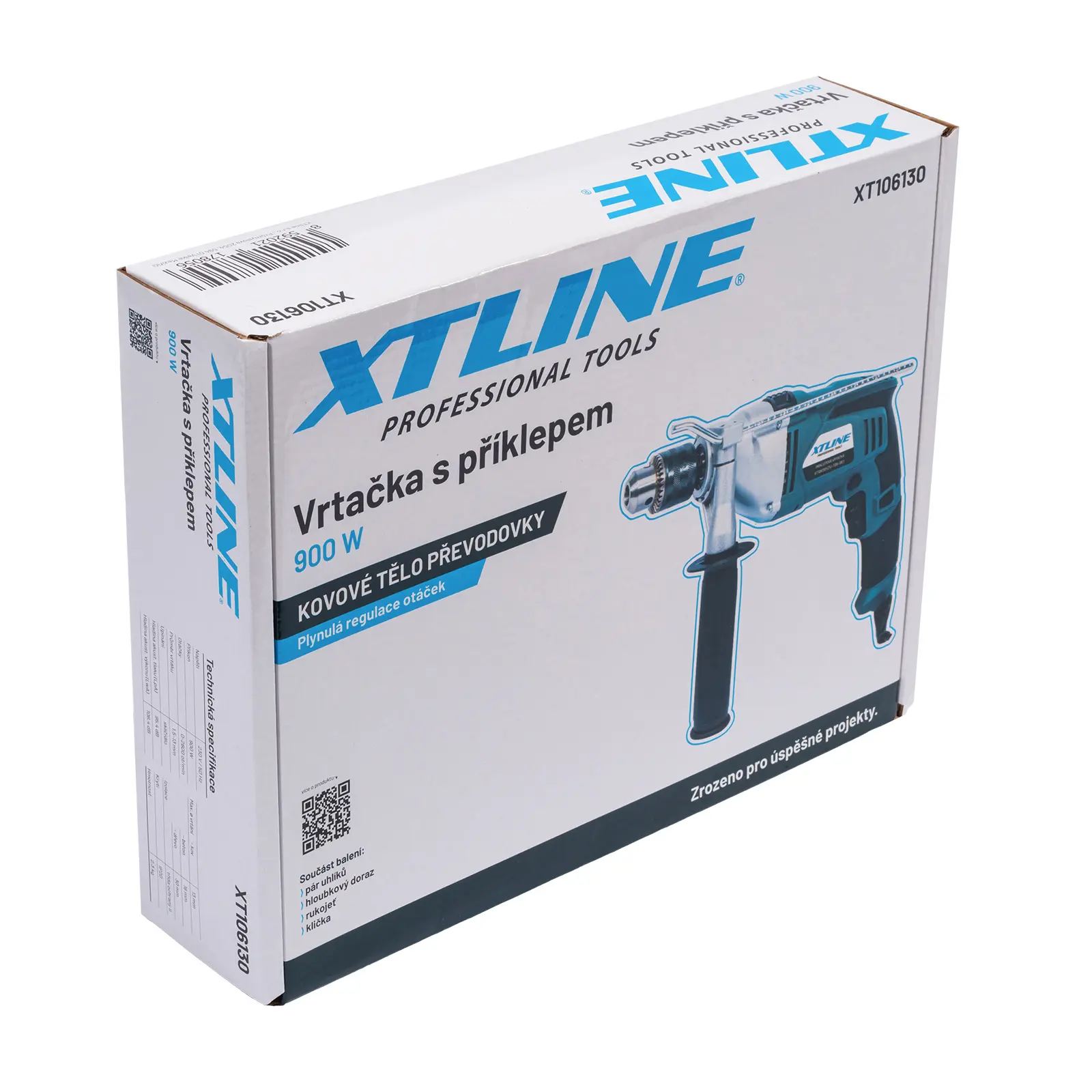 Příklepová vrtačka s kovovým sklíčidlem a přední části těla slouží pro přesné, snadné vrtání do všech materiálů, díky příklepu i do stavebních materiálů. Vrtačka je dobře ovladatelná díky velkým vypínačům, přepínači směru chodu a plynulé regulaci otáček.