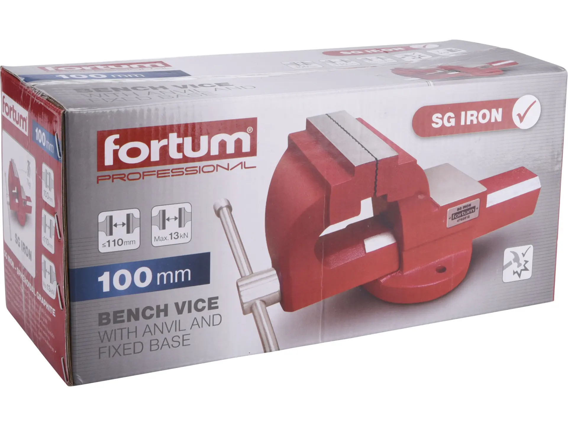 • Svěrák je vyroben ze speciální tvárné litiny s kuličkovým grafitem (SG Iron), díky čemuž má vynikající tažnost a svou houževnatostí převyšuje svěráky vyrobené z klasické šedé litiny. Vlastnostmi a kvalitou se tak řadí hned za svěráky kované.