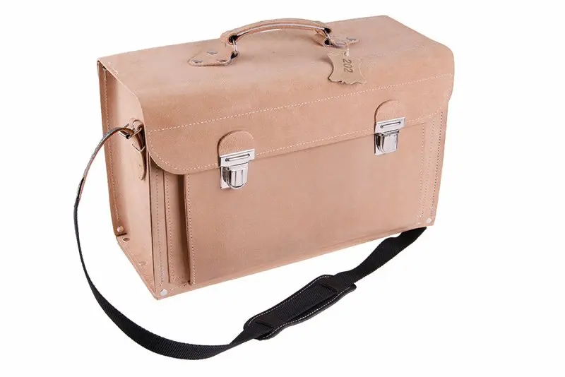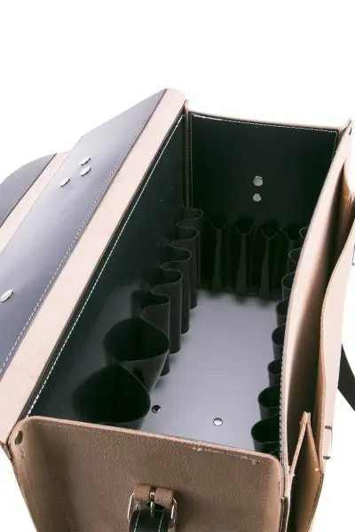 Profesionální brašna montážní. Brašna je z přírodní usně, je pevně vyztužena ze všech stran. Obsahuje tři řady vnitřních kapes na nářadí a jednu přední kapsu. Jde o velmi odolnou a kvalitní brašnu, uspokojí i ty nejnáročnější uživatele. Brašna je ušita speciální PES nití Amann, nosnost nitě je 12 kilo, švy jsou dále v exponovaných místech nýtovány. Prvky: držadlo, popruh přes rameno s nárameníkem, pevně vyztužená. Vnitřní konstrukce: 1 kapsa na předním díle na dokumenty, 3 řady přihrádek na nářadí. Výztuhy: dno, hřbet, boky, přední i zadní díl. Hlavní materiál: přírodní hovězinová useň s ochranným lakem.