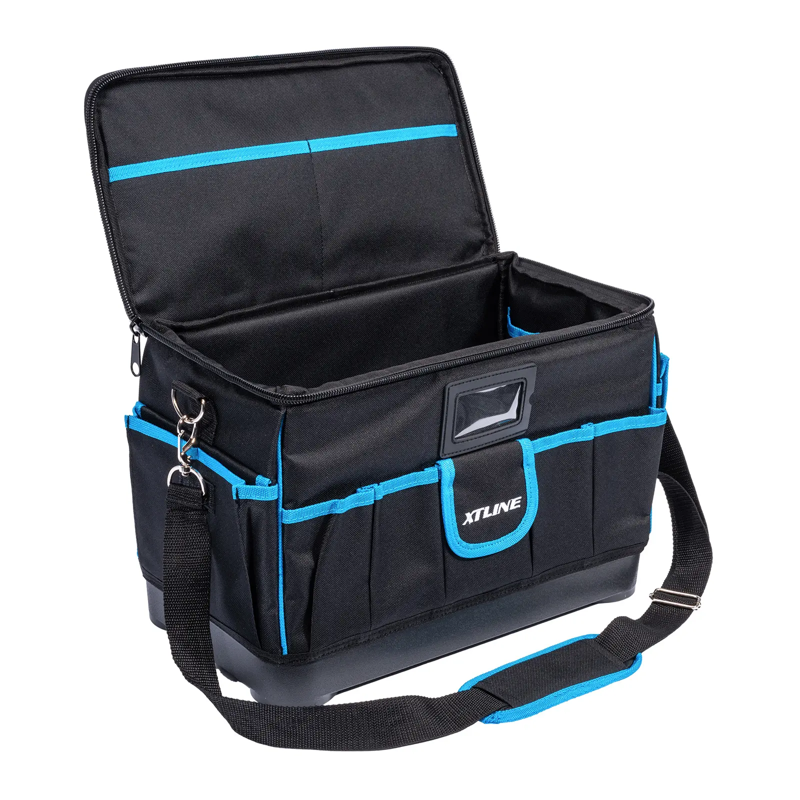 Nylonová taška ná nářadí má 31 kapes a 8 držáků na bity. Disponuje vyztuženým plastovým dnem. Maximální nosnost tašky činí 15 kg. Součástí balení je i ramenný popruh, který je možný připnout na kovová očka.