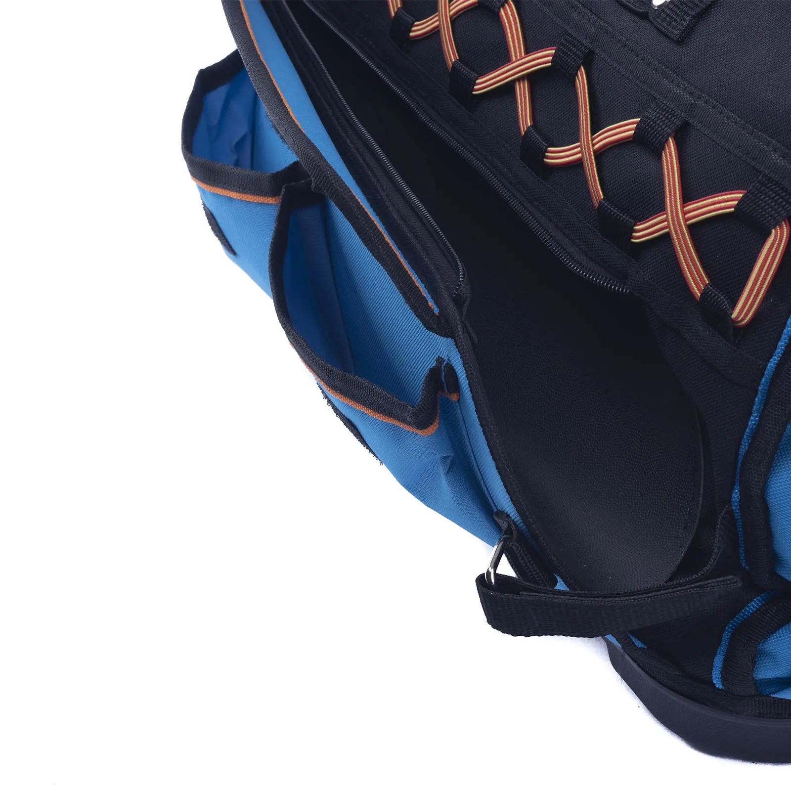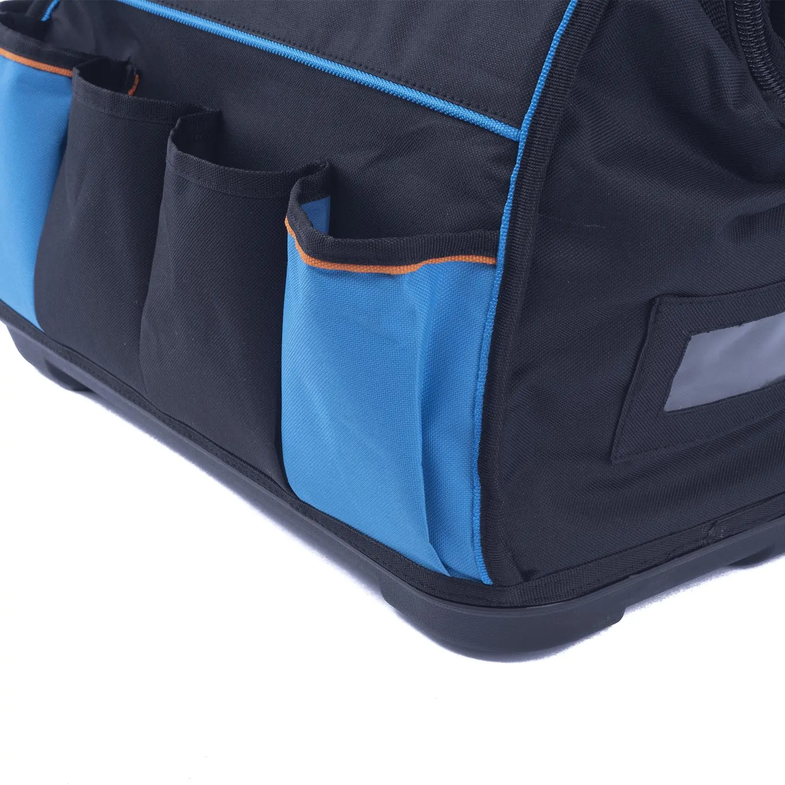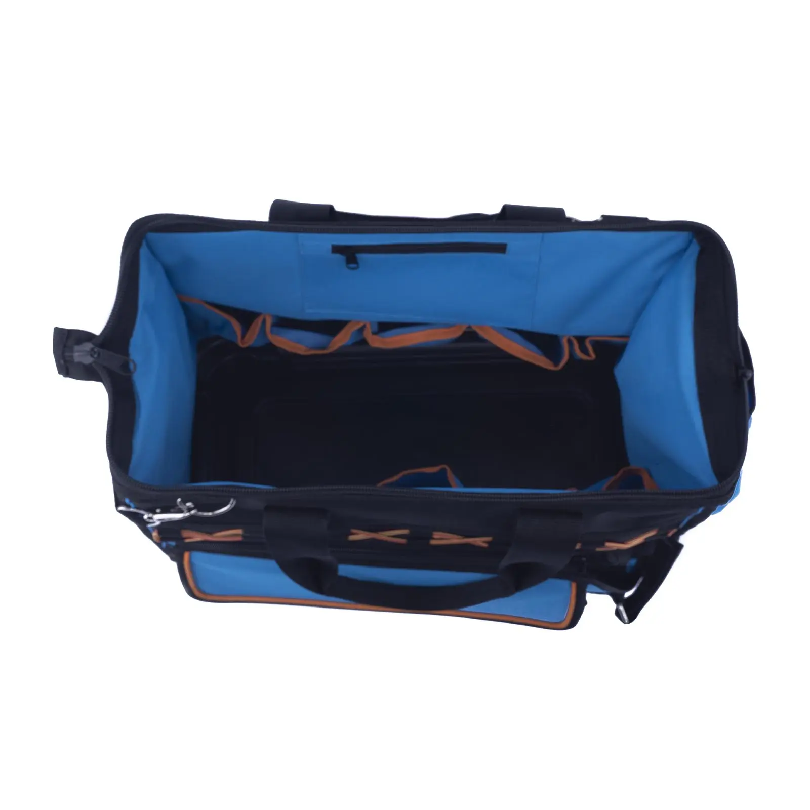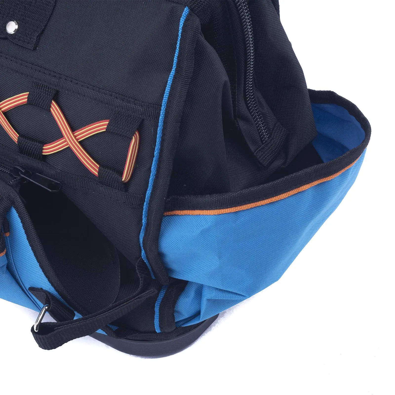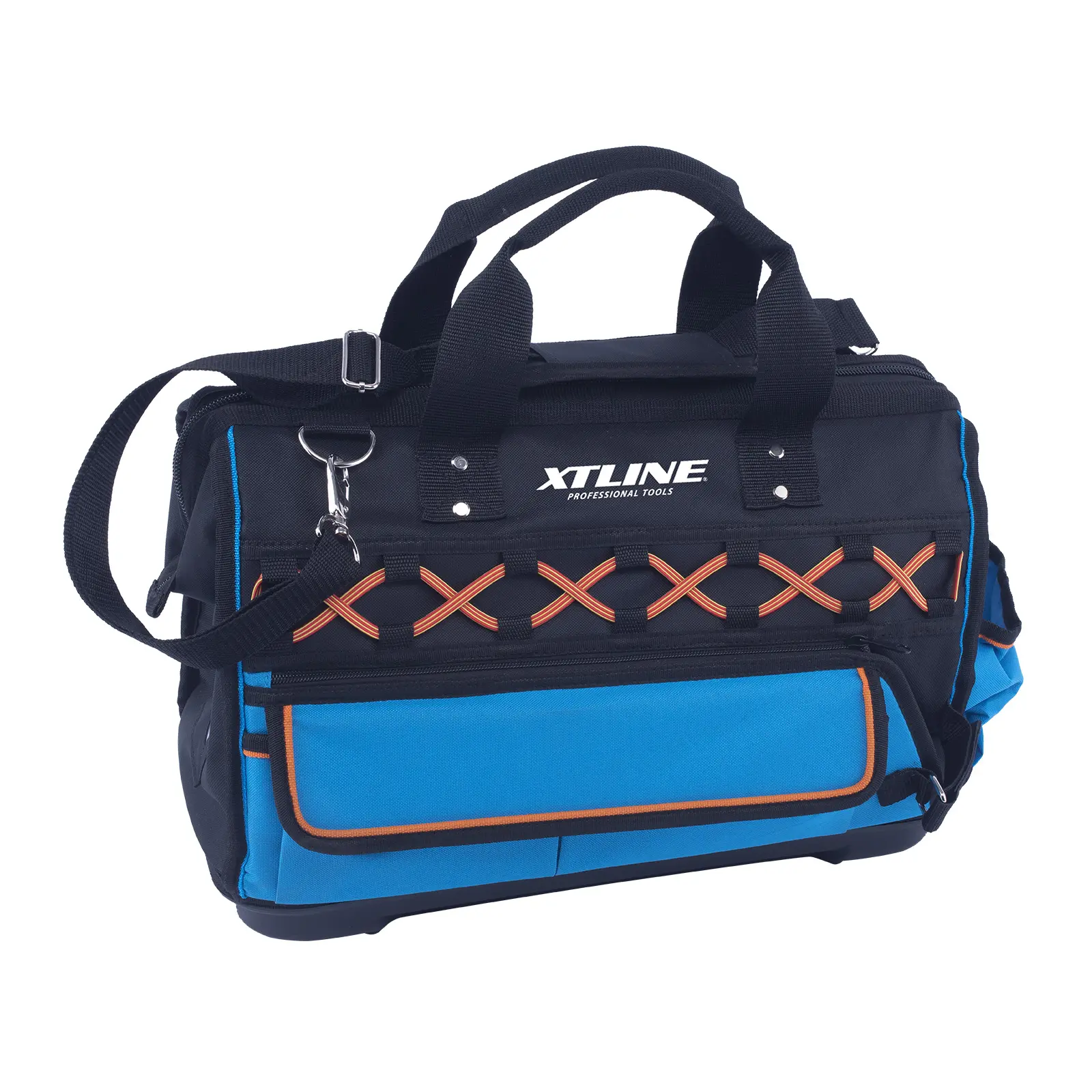 Taška na nářadí má 7 venkovních kapes, vyztužené PVC dno, přední gumový popruh, stahovací pásek na suchý zip, hlavní kapsu s vnitřním organizérem a 2 kovové očka pro popruh přes rameno. Umožňuje pohodlné přenášení nářadí a nástrojů.
