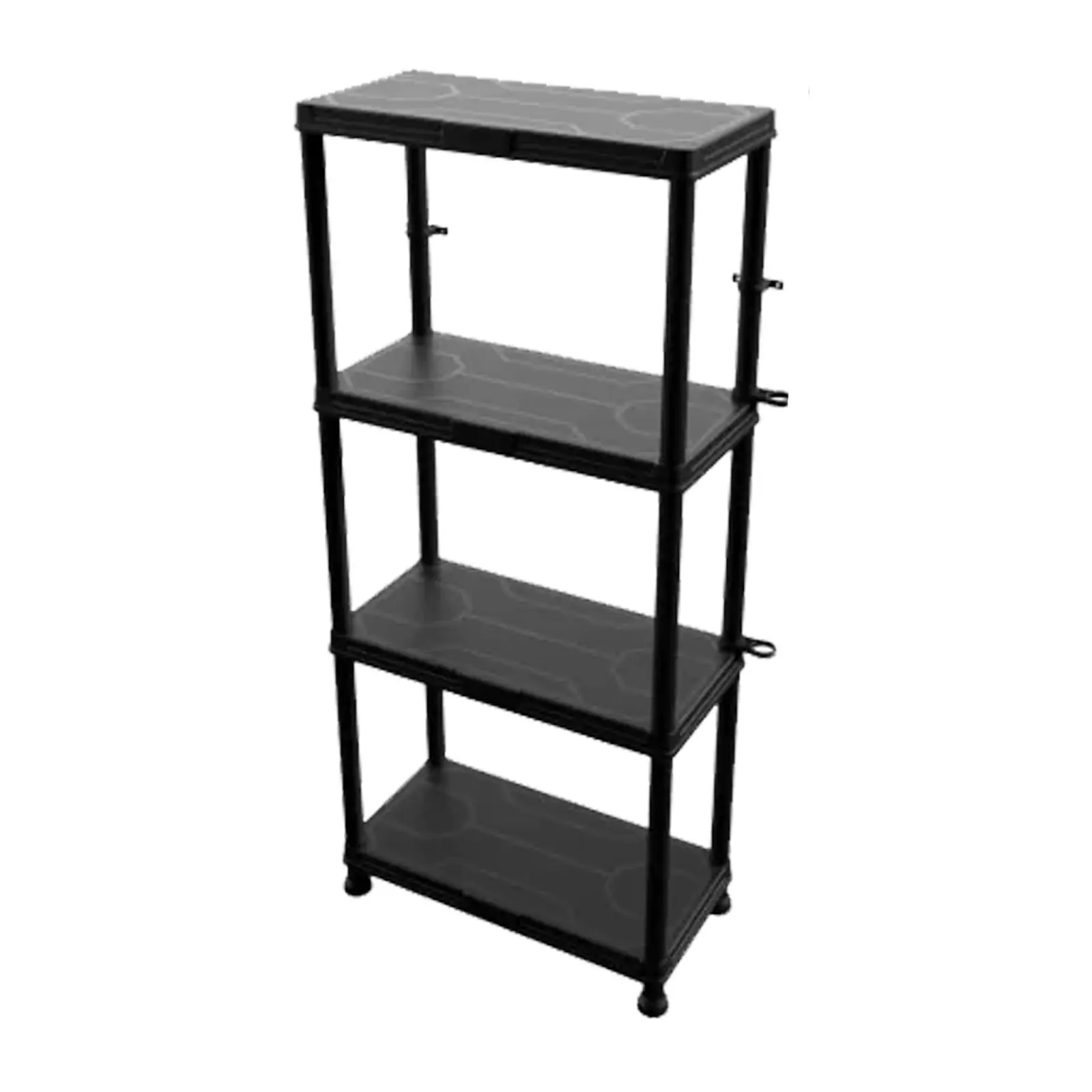 Lehký a pevný skladový regál z recyklovaného plastu je praktickým řešením pro sklad, sklep i technické prostory. Každá police unese až 25 kg. Montáž je rychlá a probíhá bez použití nářadí. Plastové provedení je odolné vůči vlhkosti, takže nedochází ke korozi ani bobtnání jako u kovových či MDF regálů. Regál lze pomocí přiložených objímek upevnit ke stěně a jednotlivé moduly je možné mezi sebou kombinovat.