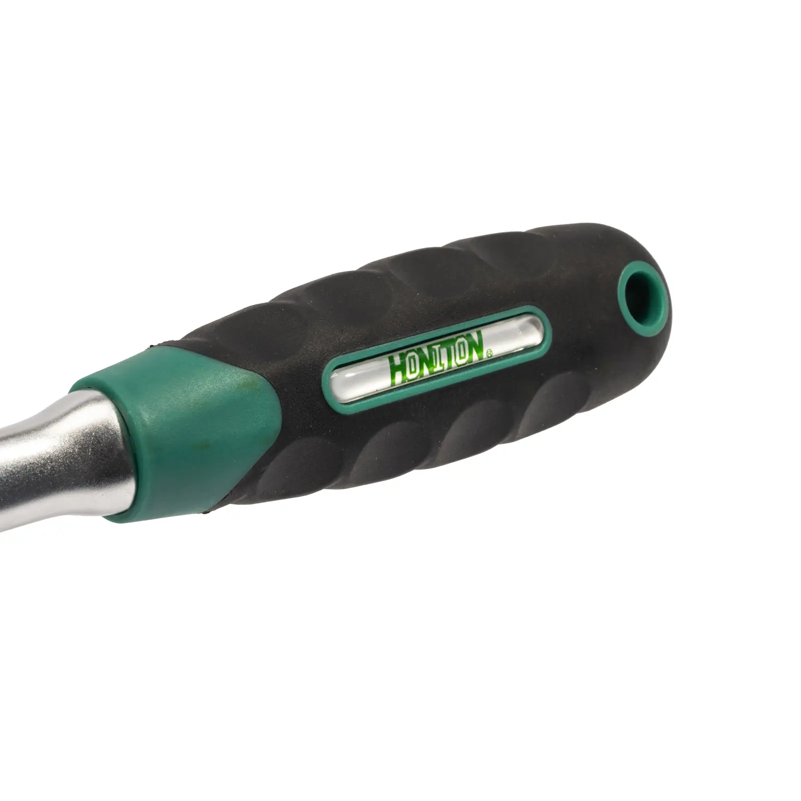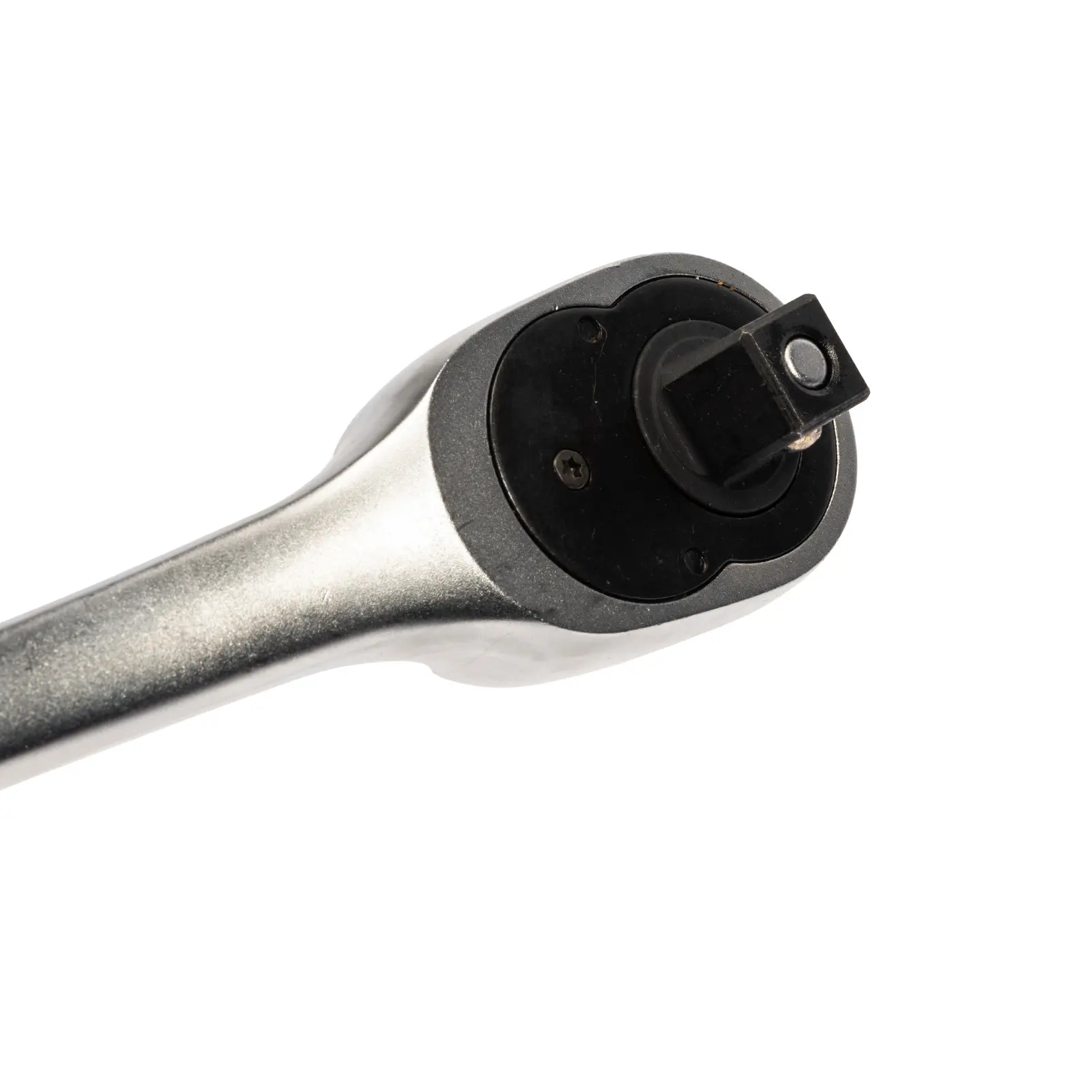 Ráčna s 36 zuby a přepínací páčkou. Pogumovaná, protiskluzová rukojeť. Chromový povrchodolný proti korozi. Aretace pevně drží hlavici na čtyřhranu a vylučuje samovolné uvolnění.Rychlá a snadná výměna hlavice pomocí pojistky.Technologie: pískovaný MBD povrchpojistný kolík pro jednoruční výměnu hlavicjednolitý korupus ráčny včetně rukojeti pro vyší pracovní zatíženíspeciálně tvrzená nejnamáhanější část ráčny